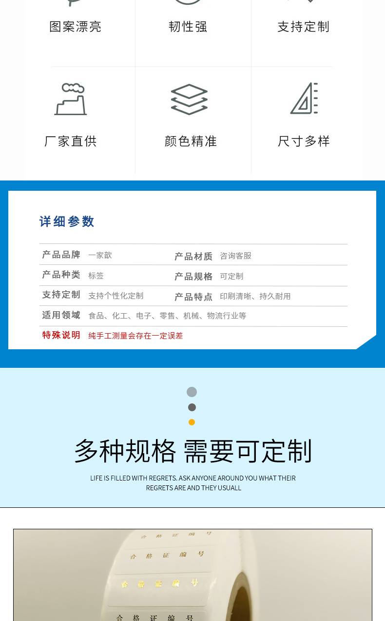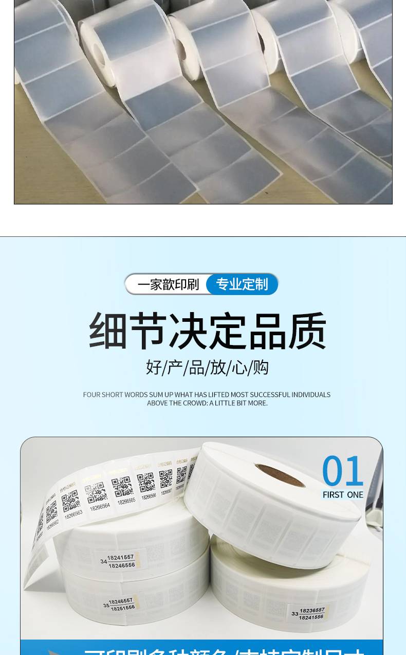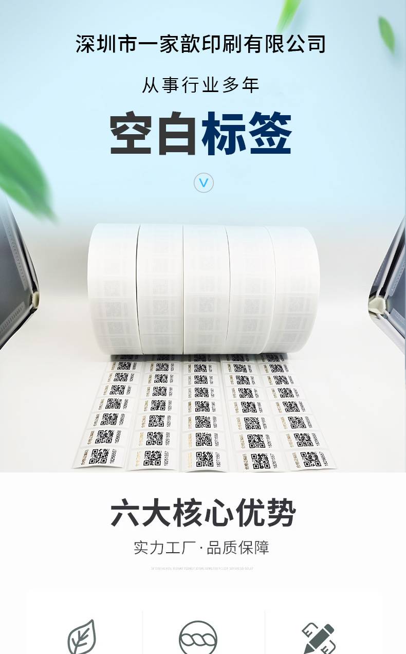 空白条码标签 铜版不干胶纸标签纸 来图来样 按需设计 一家歆