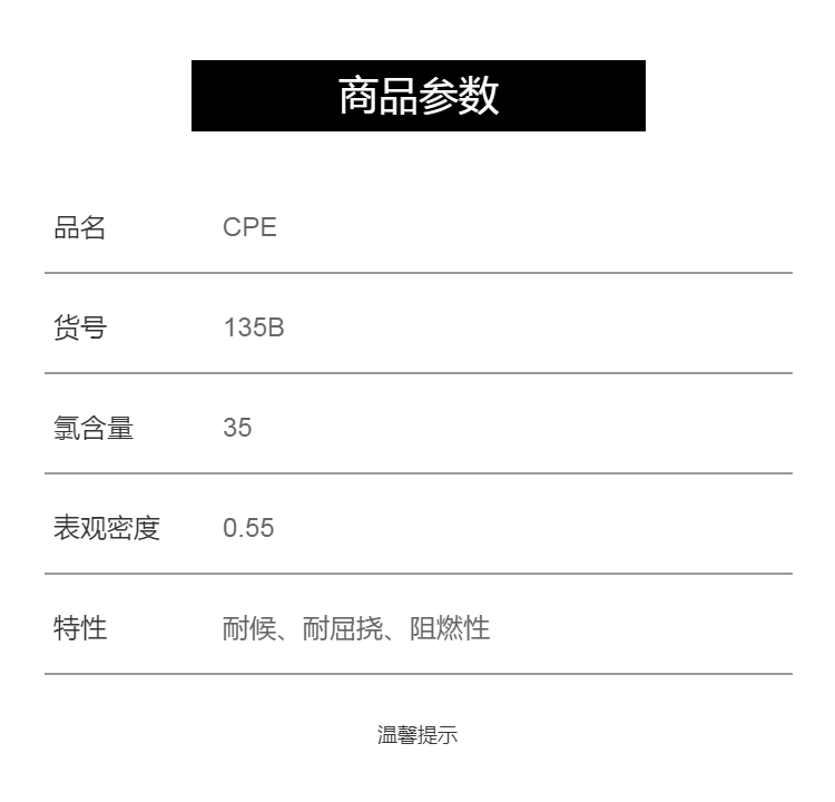 CPE 日照化工 135B主要用作特种合成橡胶改性剂或增溶剂
