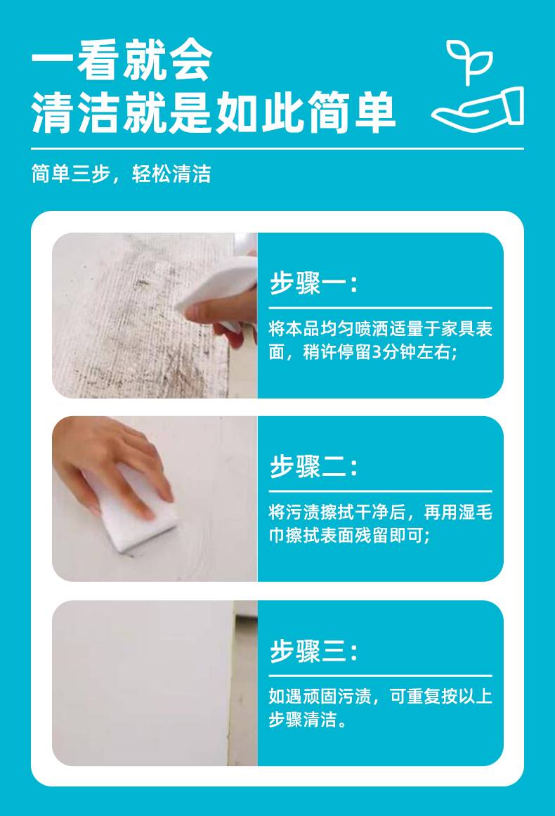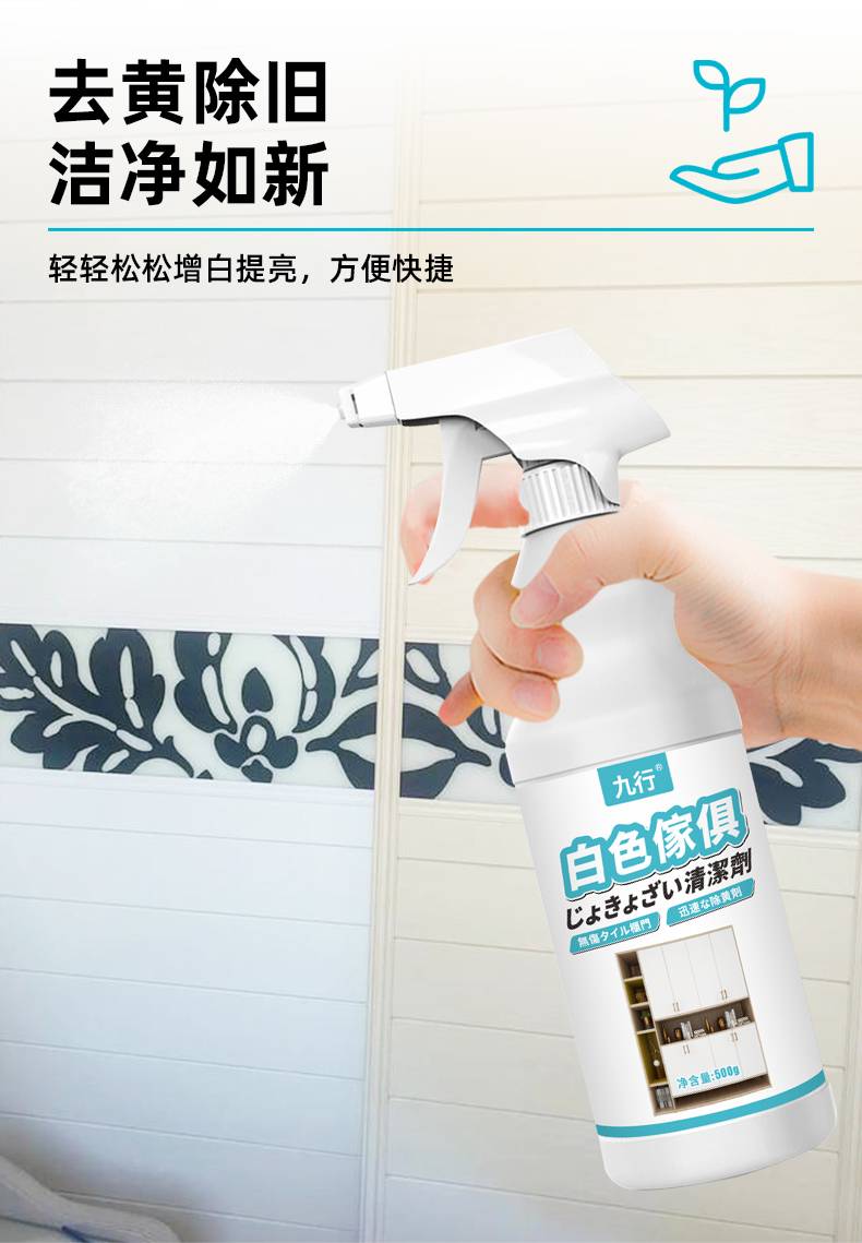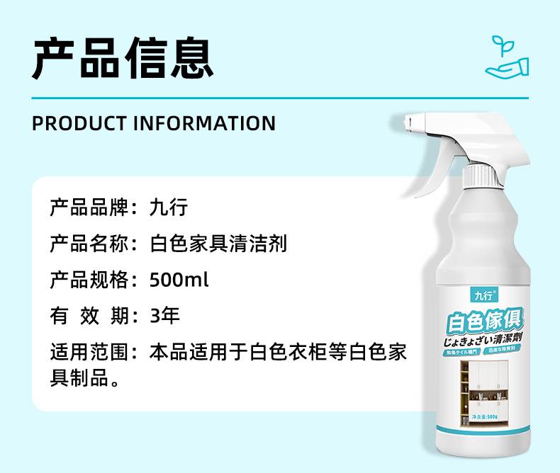 九行白色家具清洁剂柜子餐桌污渍黄渍清洁衣柜鞋柜去黄除旧清洁