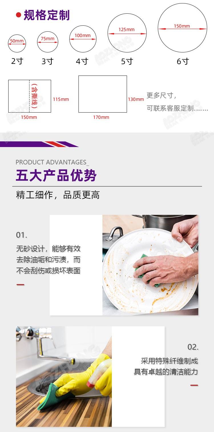 傲众定制家用刷碗除锈厨房餐桌清洁不沾油去污垢菜瓜布百洁布方形