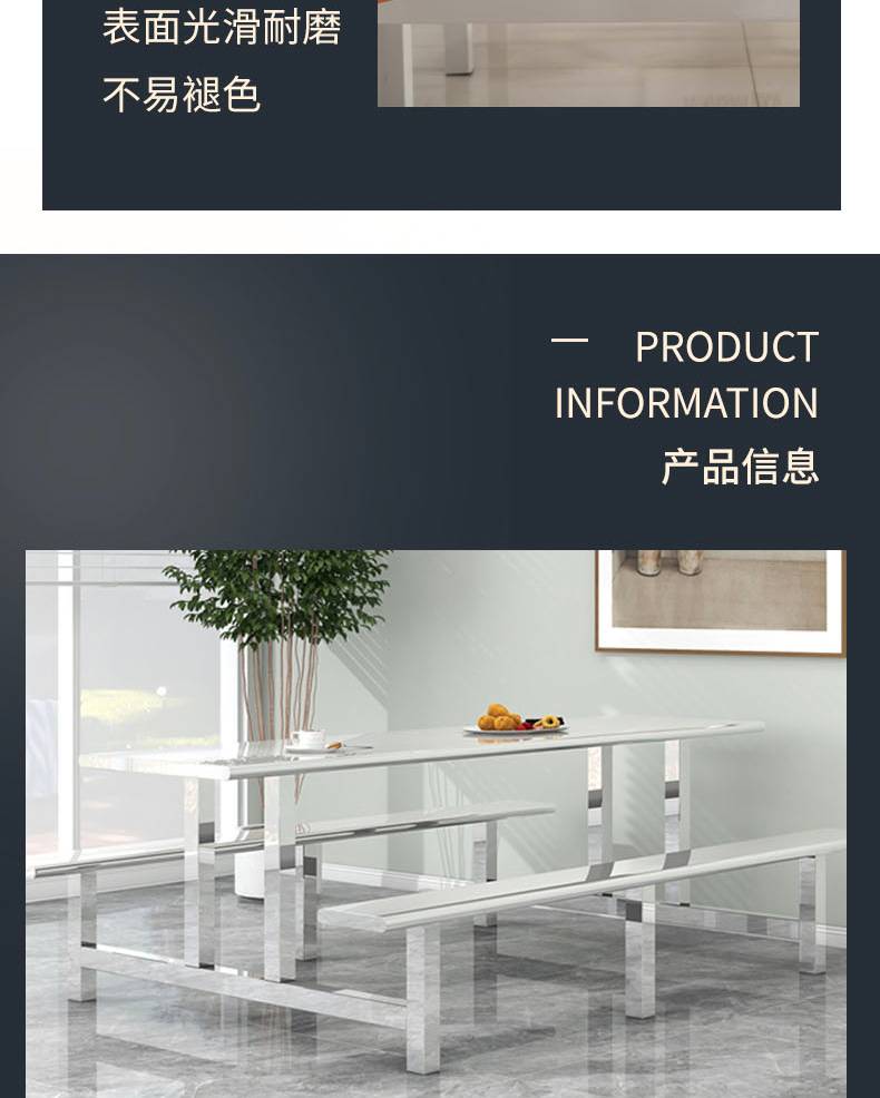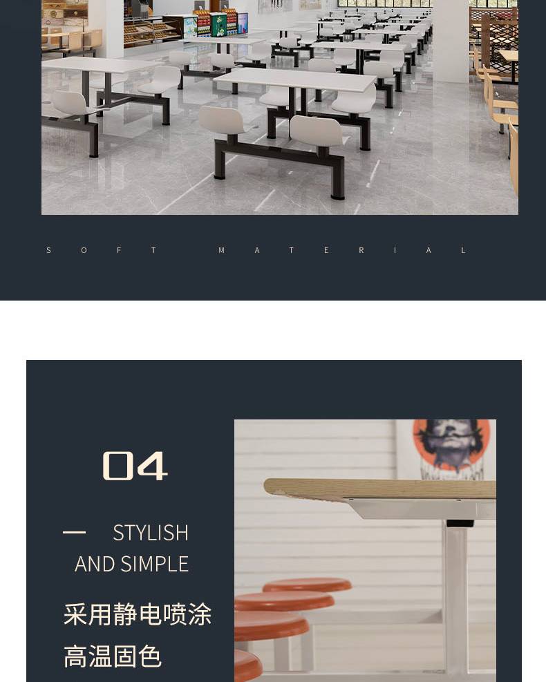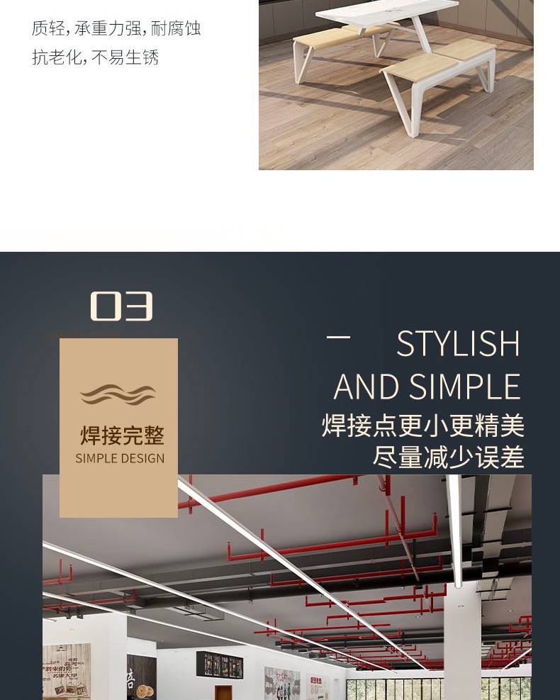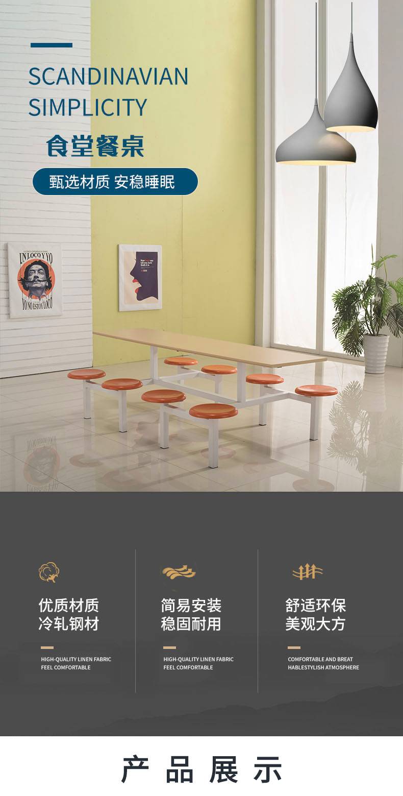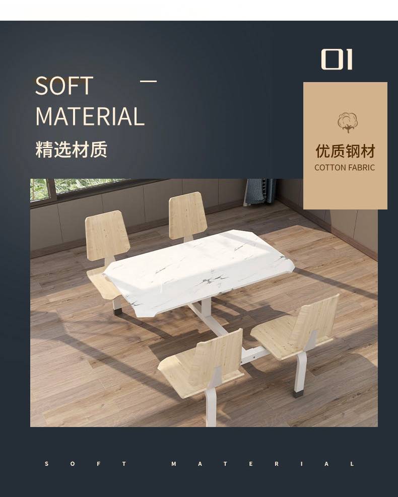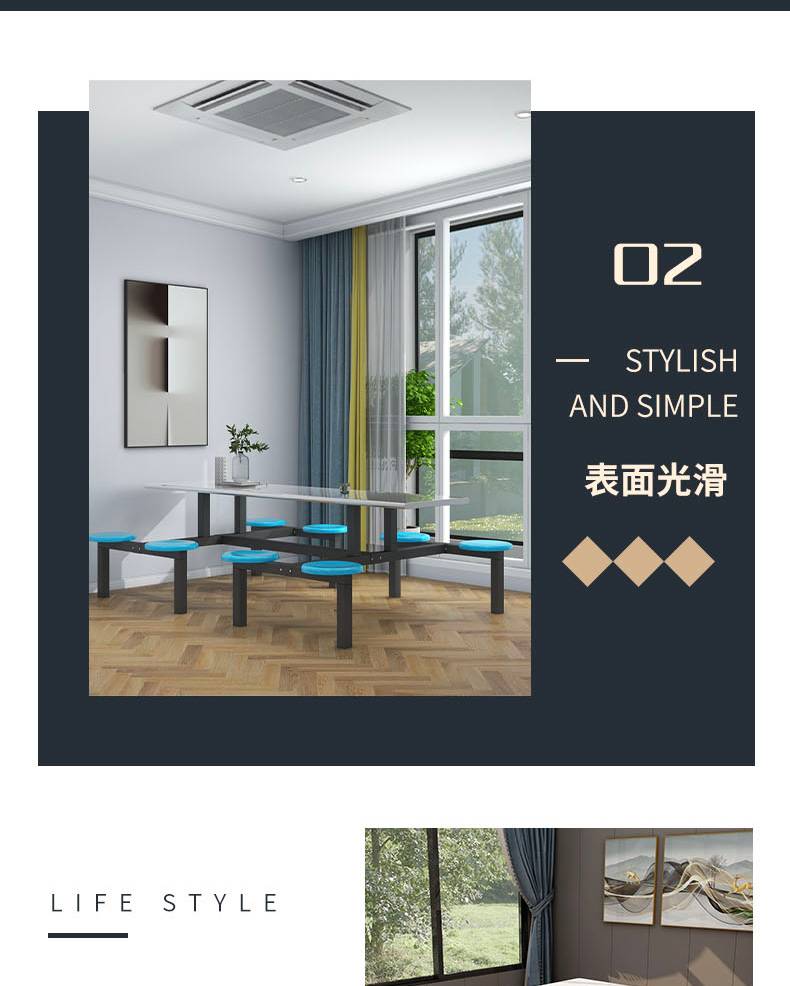 四人位食堂餐桌 小吃店连体快餐桌椅 耐刮耐磨易清洁