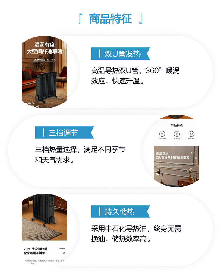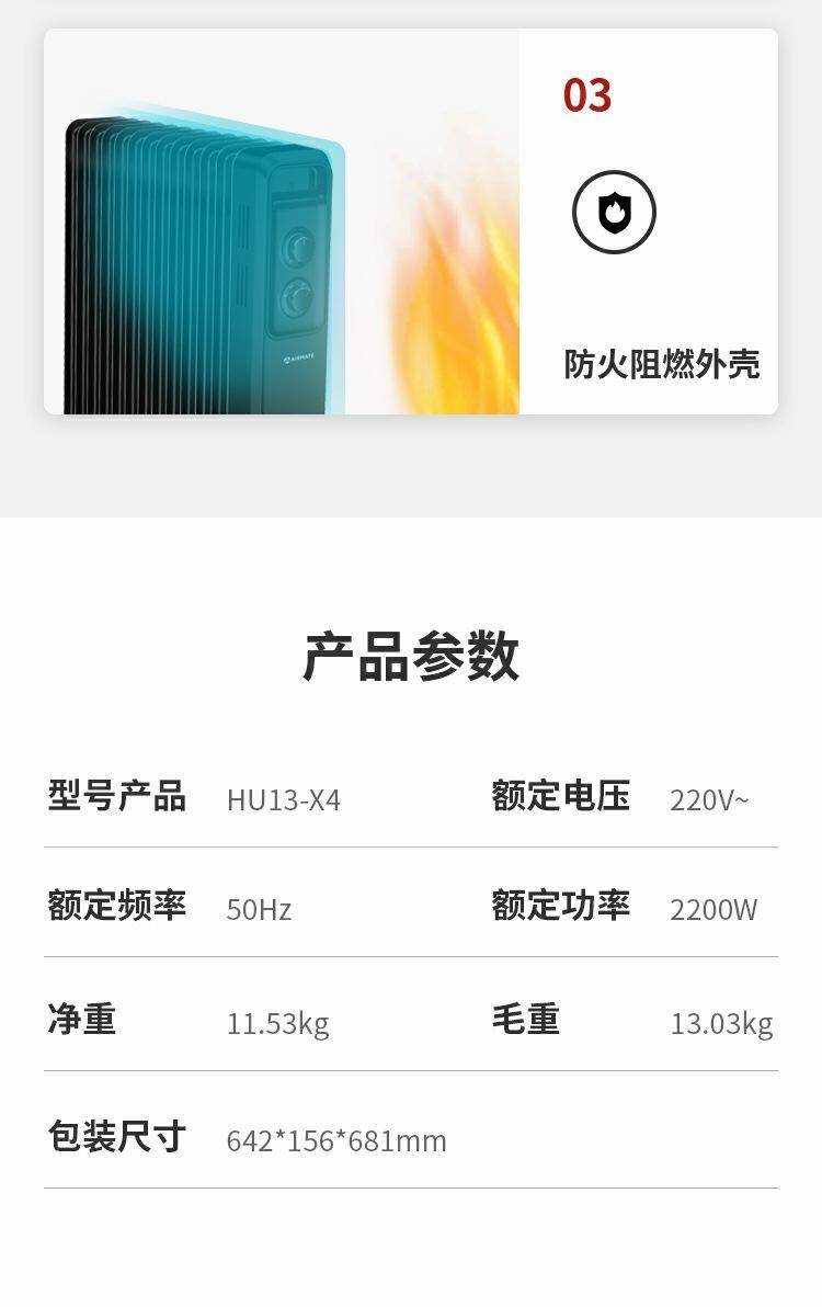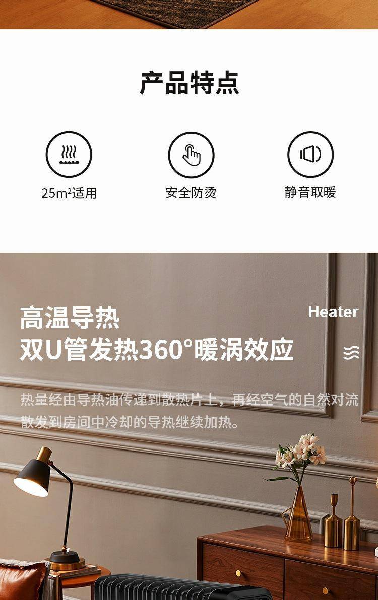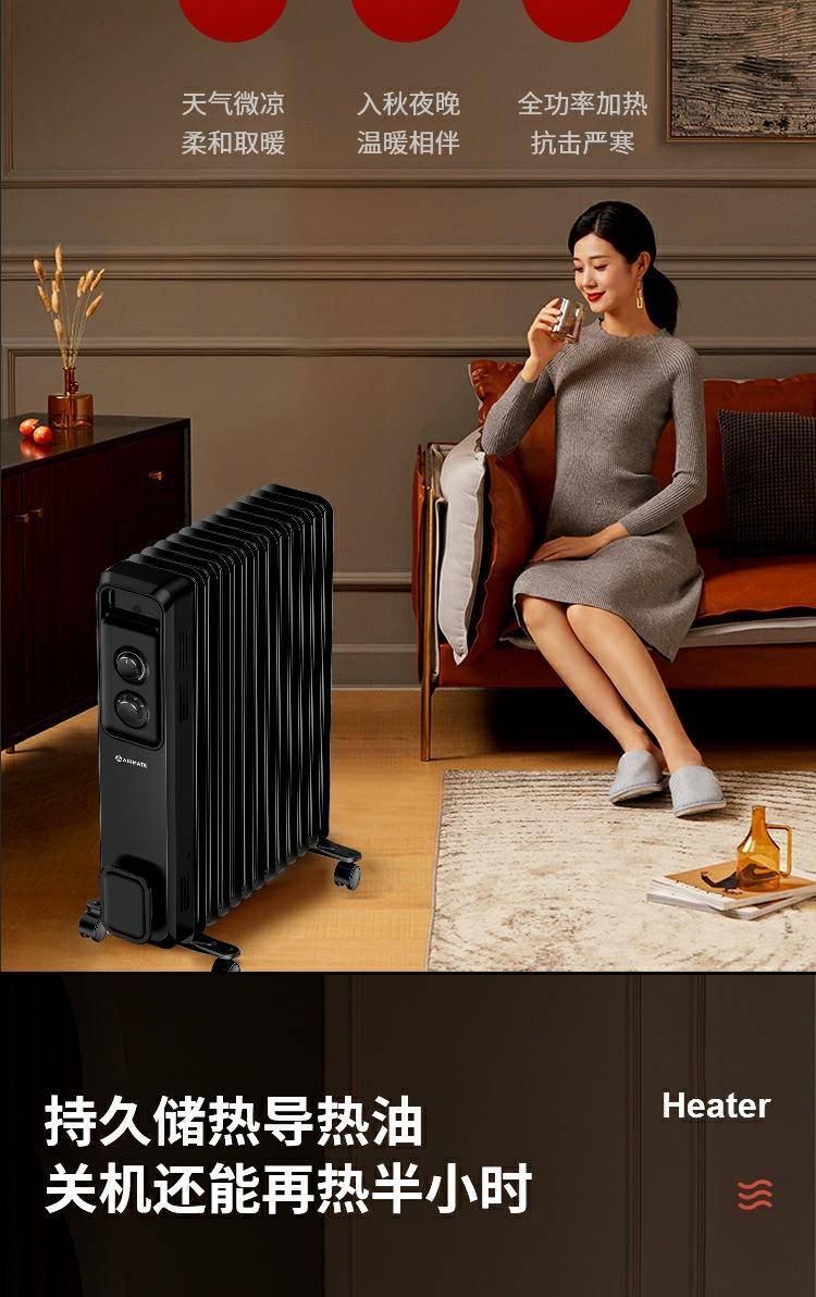 艾美特电热油汀家用恒温节能取暖器母婴即热式大面积卧室电暖器