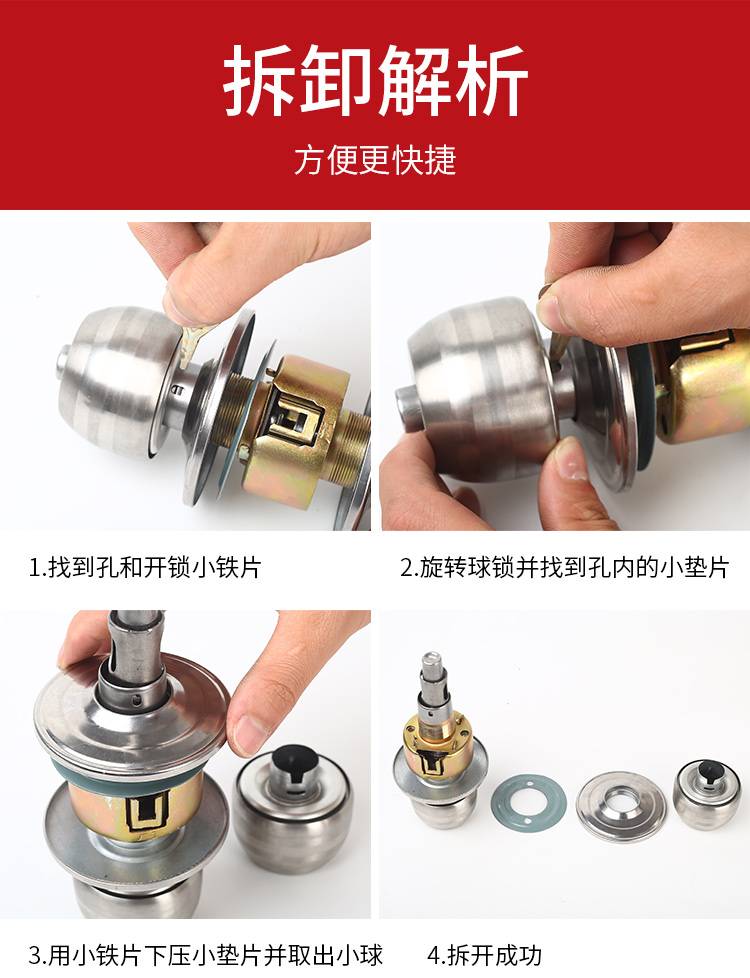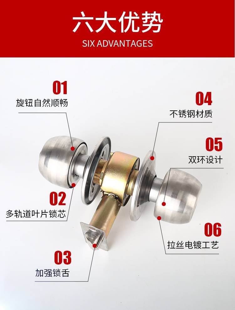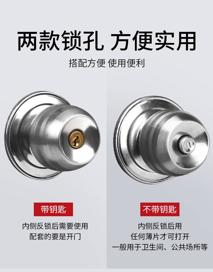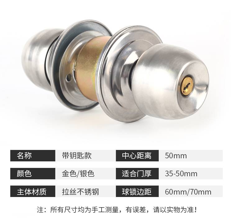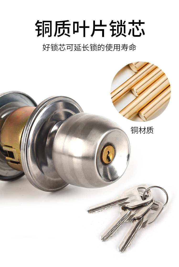 家用通用球形锁 房门圆形锁具 防腐耐用带钥匙