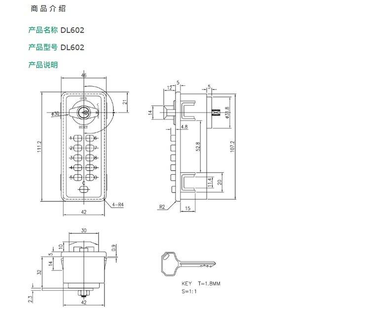 档片锁,DL602 ,无钥匙锁具, 结构稳定,质量严控