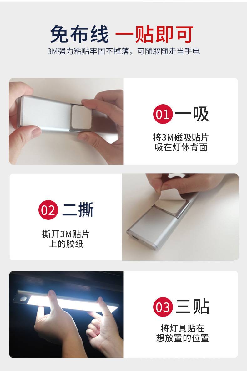 定制调光线条灯 智能展柜条形灯 超薄人体感应无线led灯超麦
