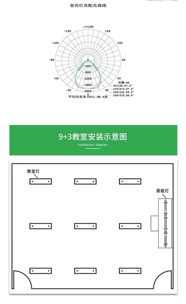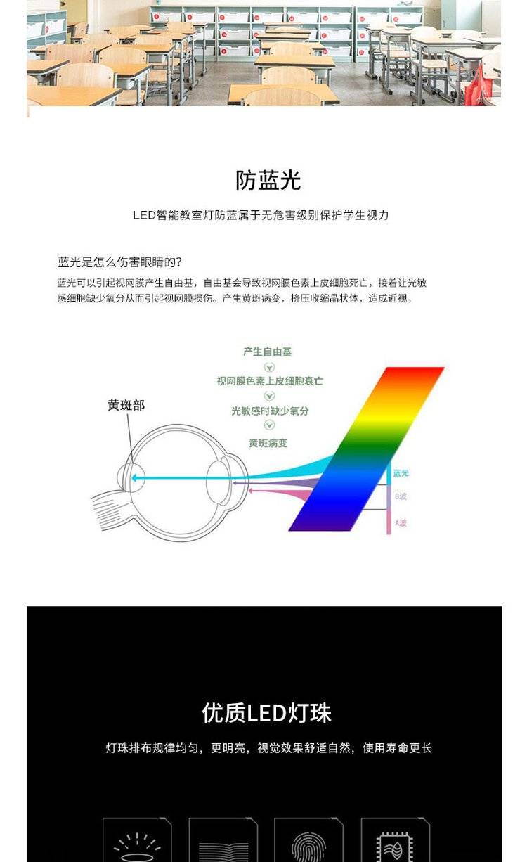 学校教室照明LED护眼灯具 校园教育照明改造防控近视招标工程