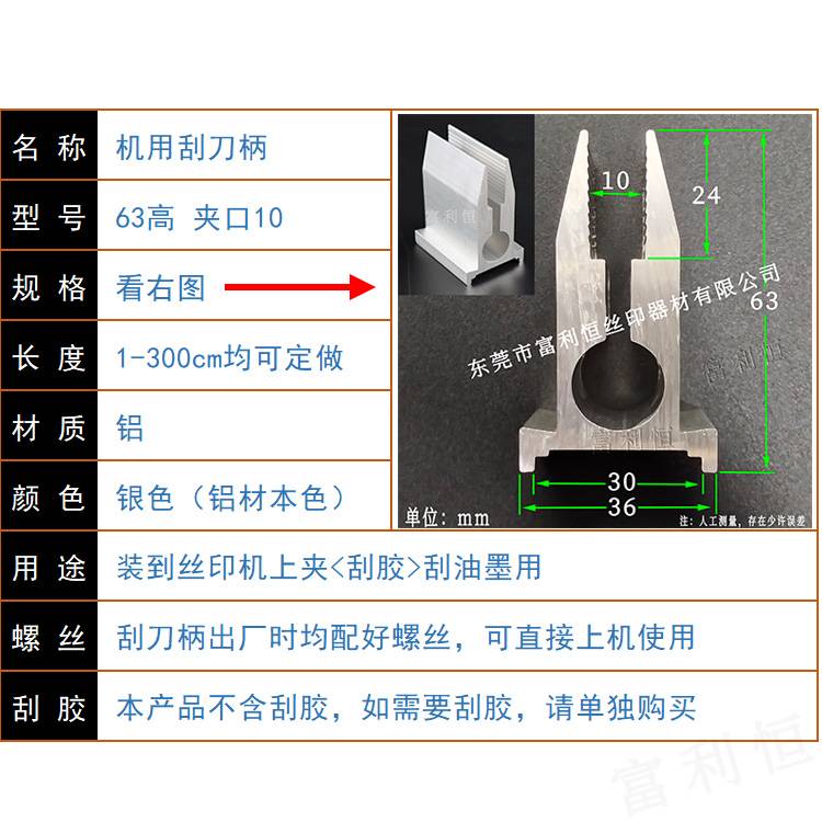 63高 丝印机刮刀柄 丝印机用机印刮墨刀飞马美诺优力刮胶