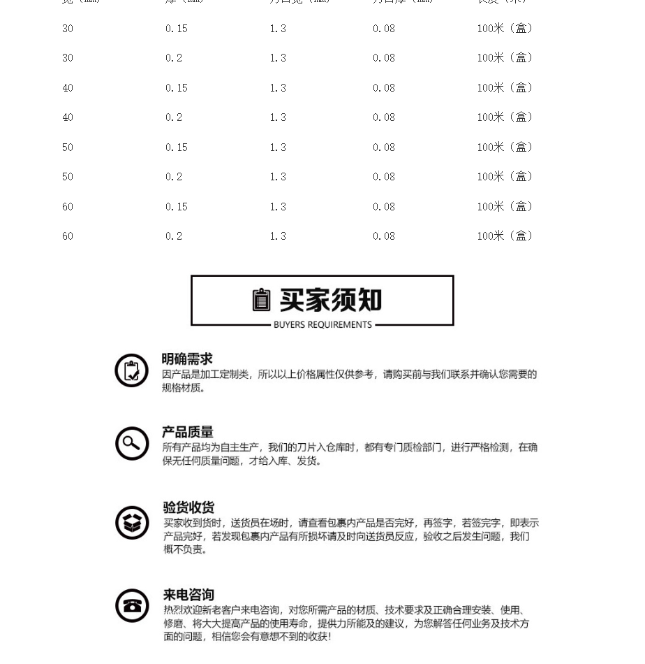 包装印刷机械刀片