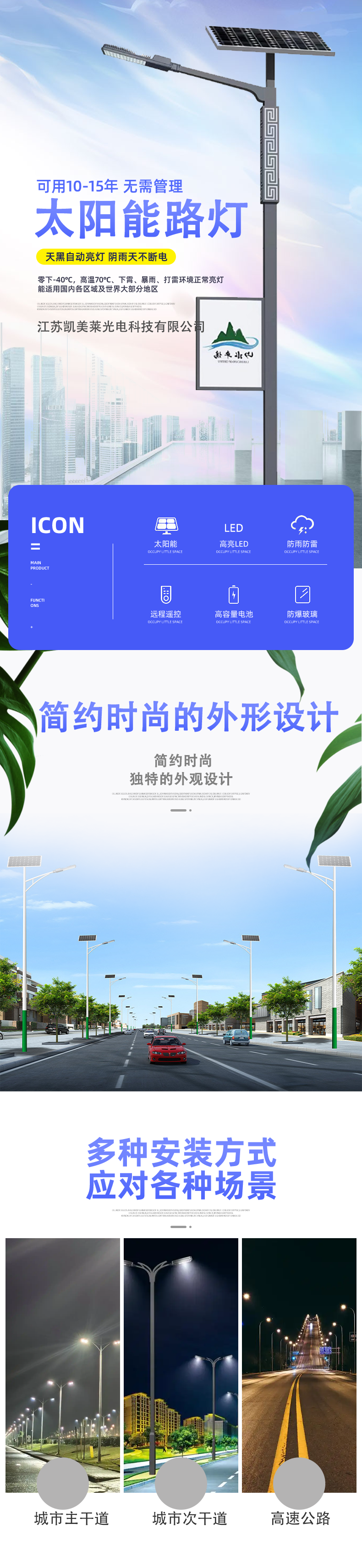 城市公路太阳能路灯 户外照明灯具 造型设计 凯美莱