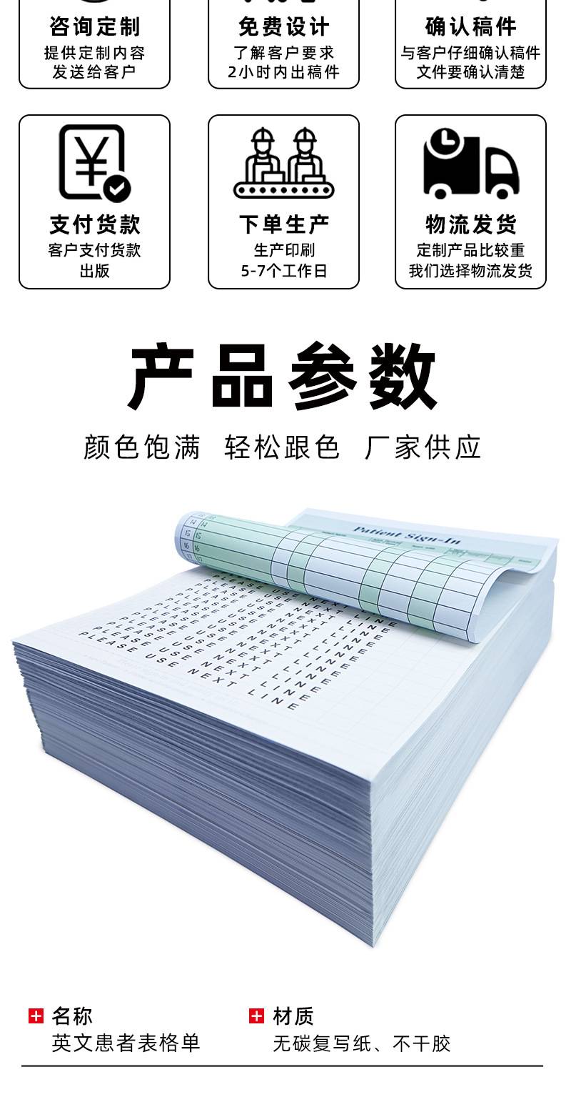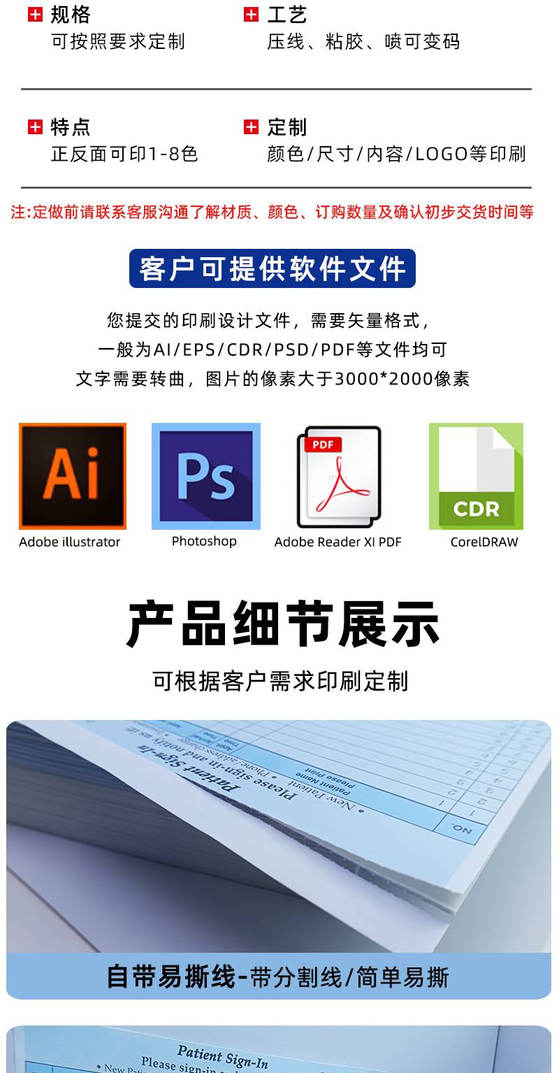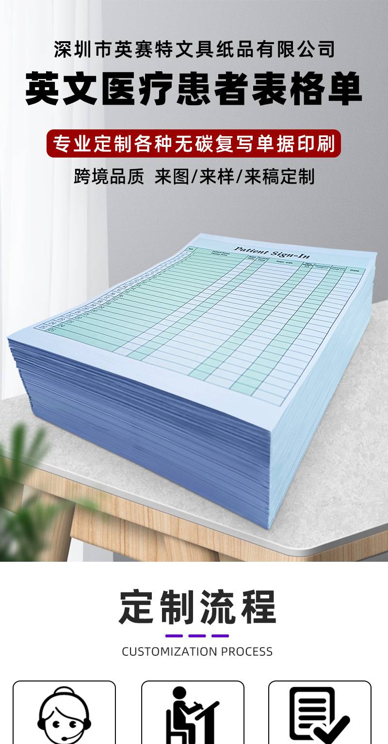 商务用便条纸国际医疗机构注册单持久剥离不干胶 无碳复写票据