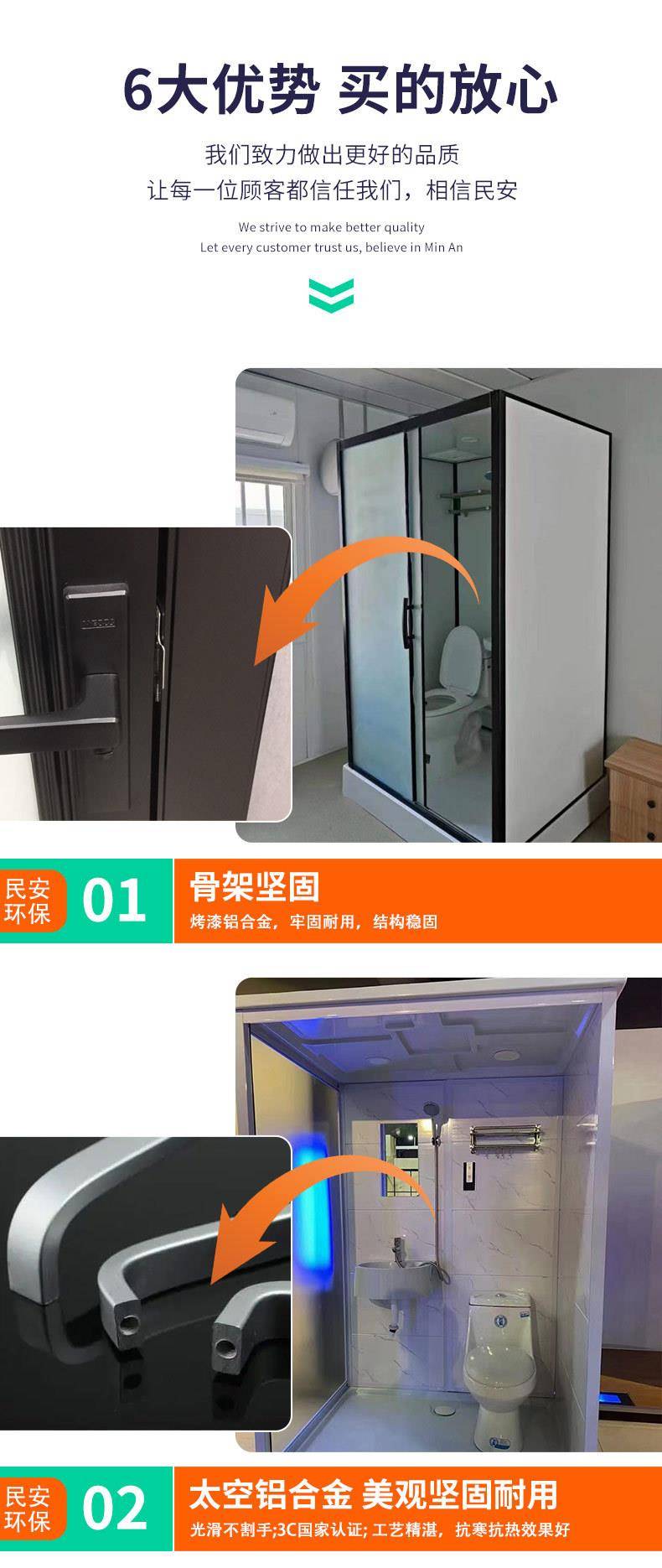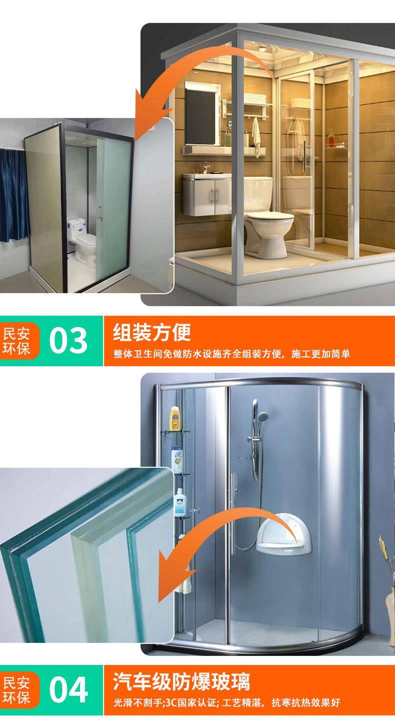 民安品牌定制扇形整体卫浴 淋浴房含底盘折叠式设计