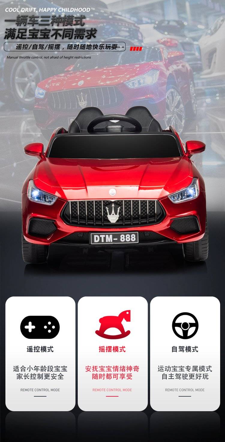 小孩四驱玩具车 蓝牙音乐自驾遥控 加宽座椅 三种模式