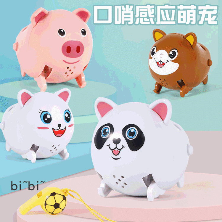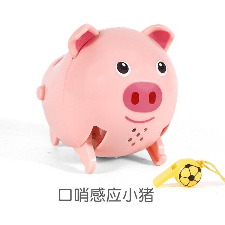 声控吹口哨猪 会跑跳的塑料小萌猪 电动带灯光 感应玩具