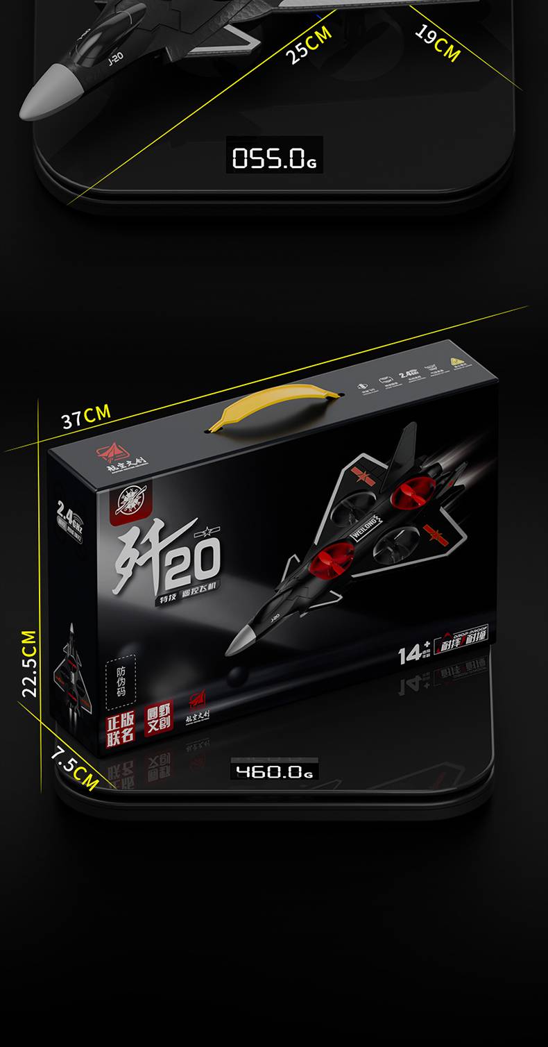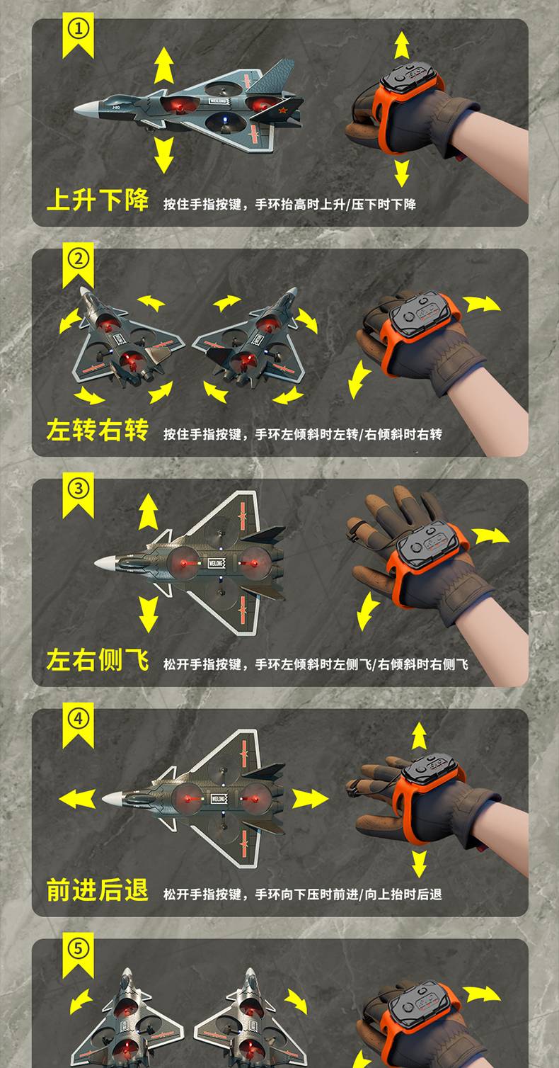 【单手柄】歼-20-单电池(续航8分钟),【手柄+手势感