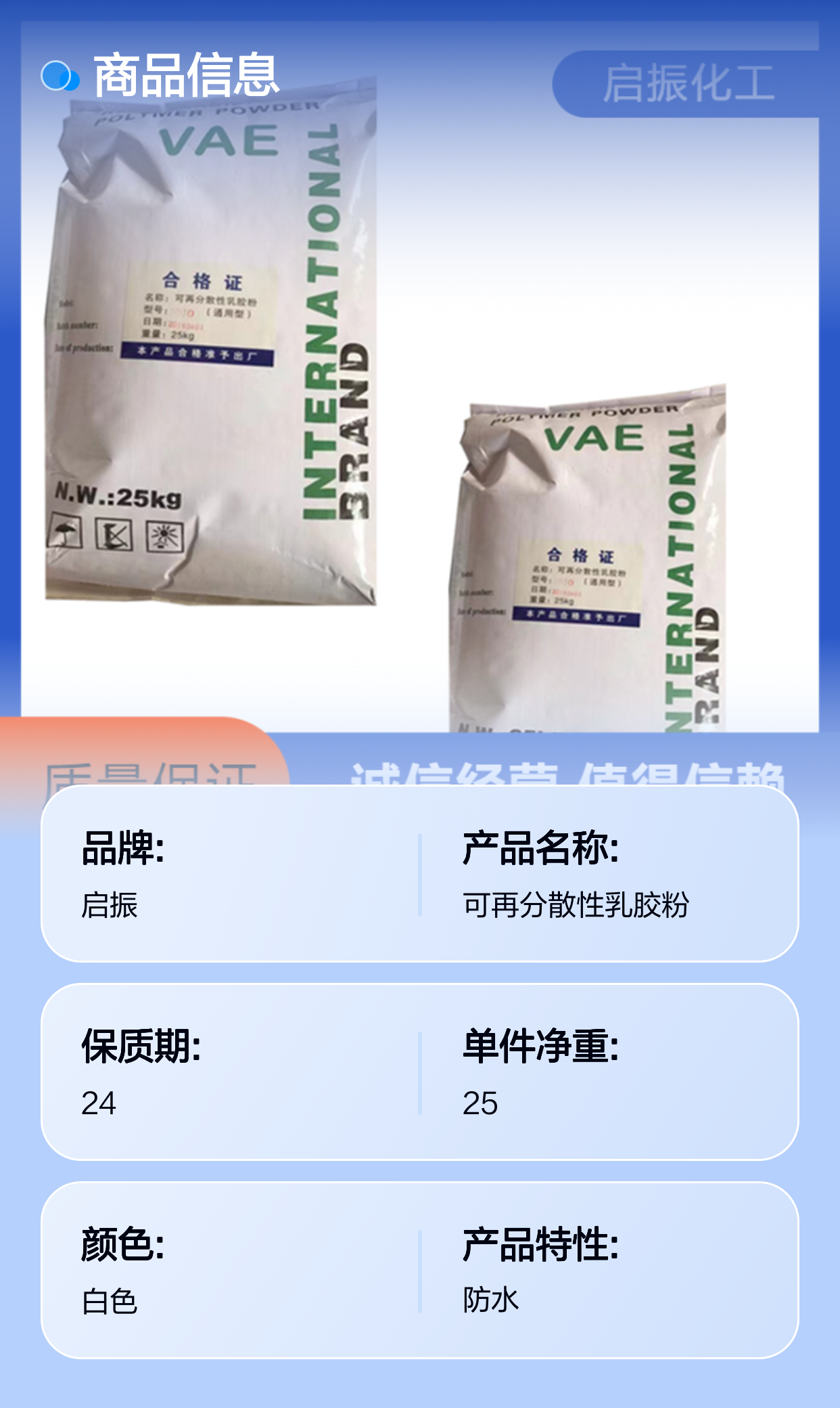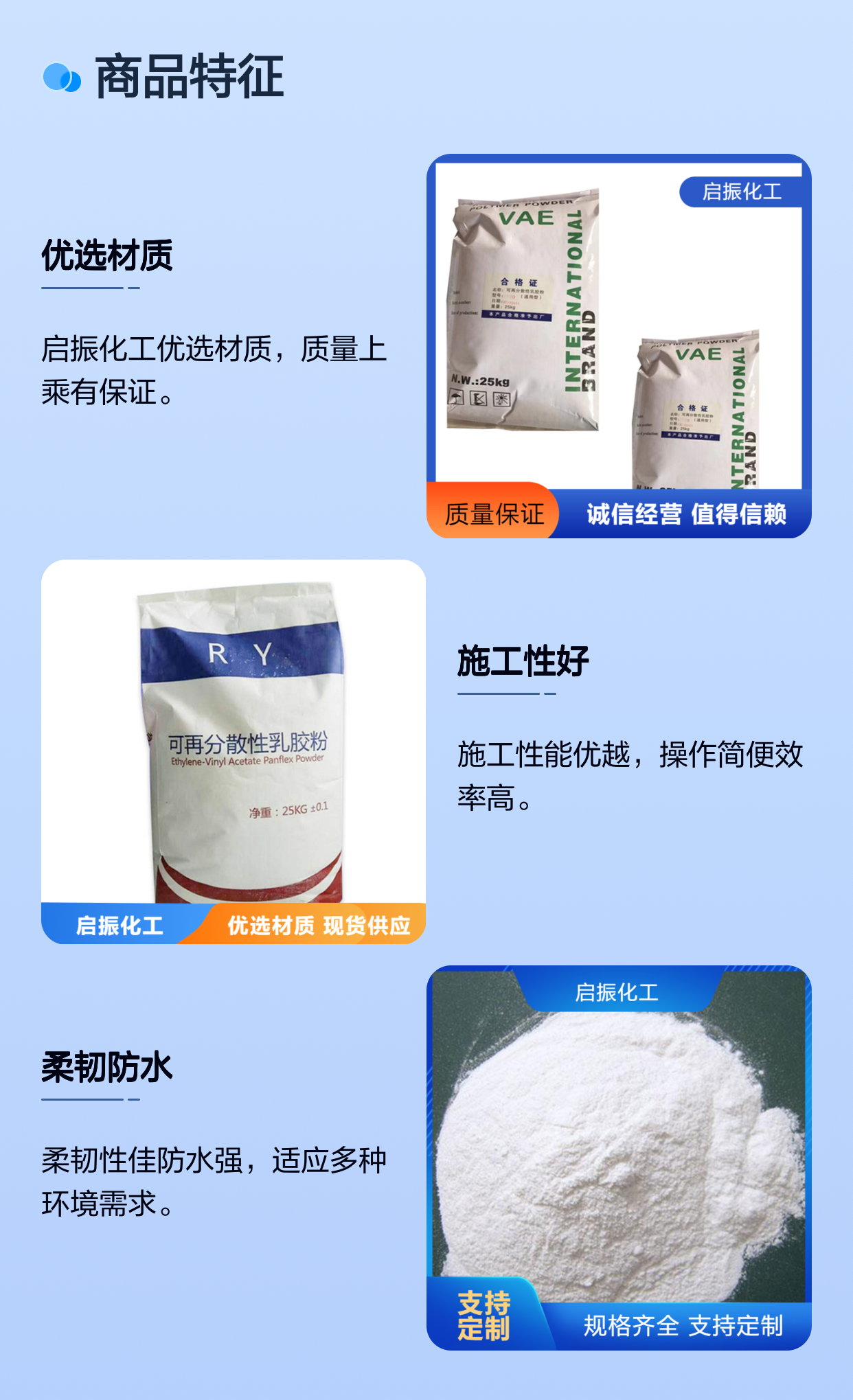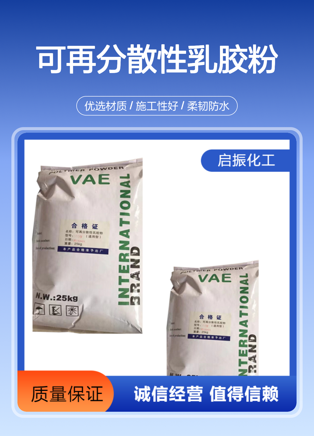VAE可再分散乳胶粉 高含量 施工性及隔热性好 启振