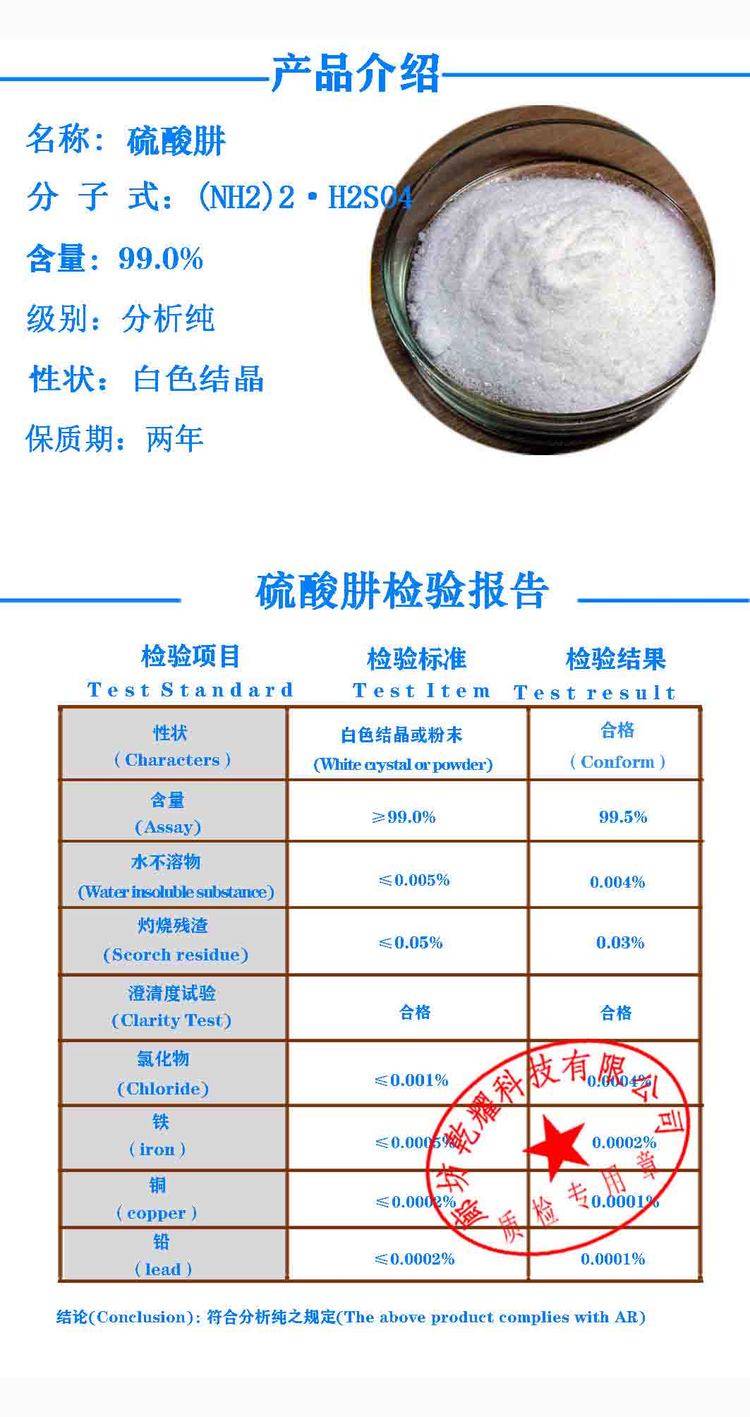 2222乾耀科技 硫酸肼 分析纯 AR 化学试剂大包装 催化剂 还原剂