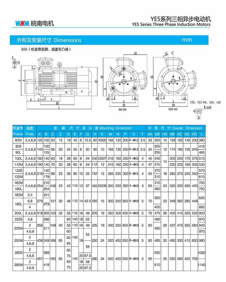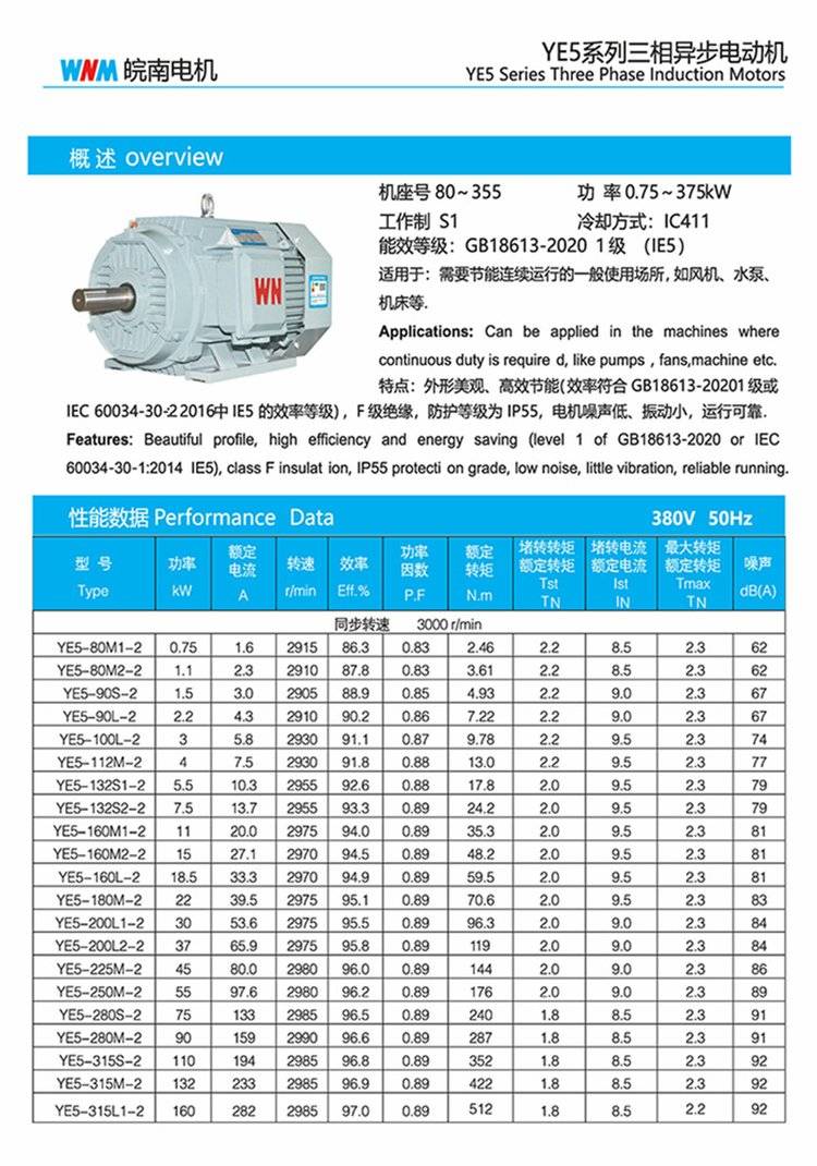 皖南YE5系列 三相异步电机 1级能效 全铜线圈 高效节能
