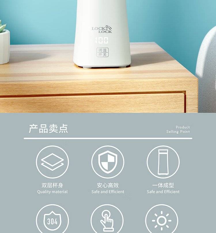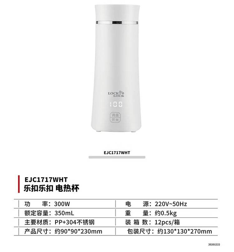 乐扣EJC1717WHT触屏电热杯 350L大容量便携烧水杯