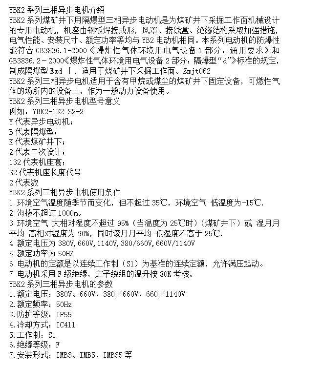YBK2系列三相异步电机 适用于煤矿井下采掘工作面