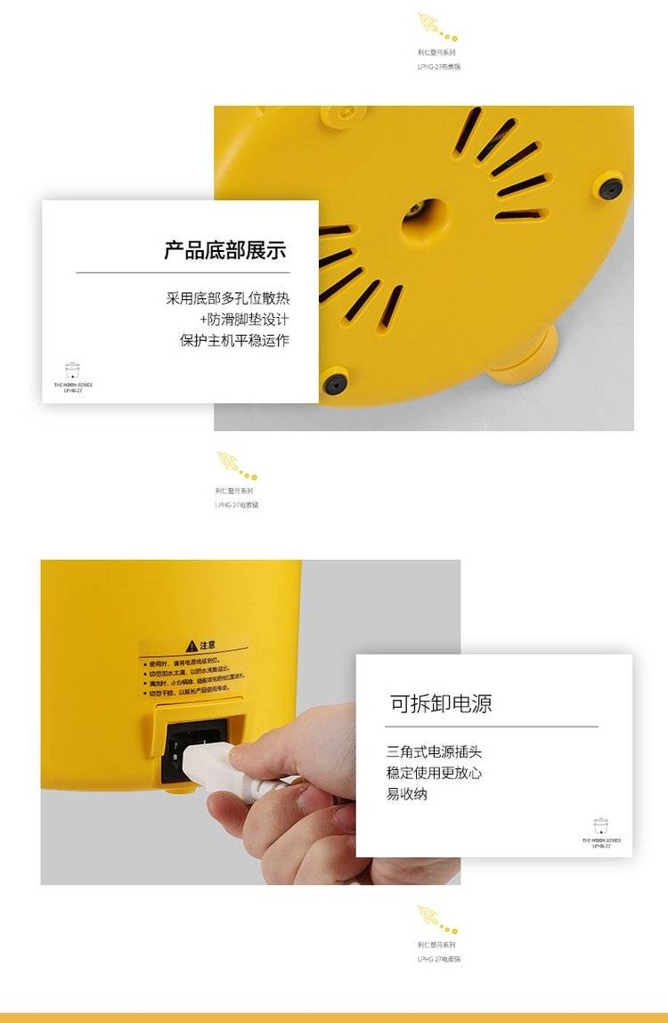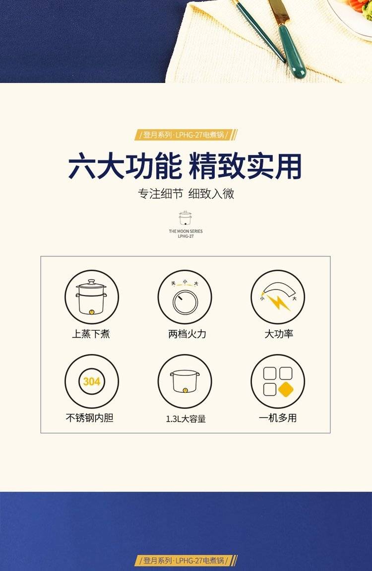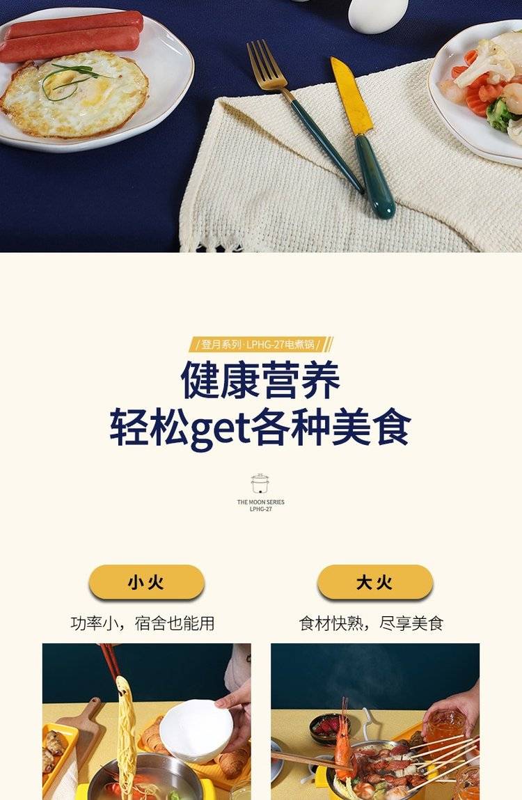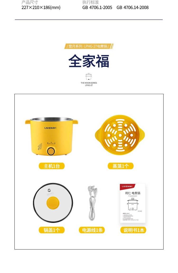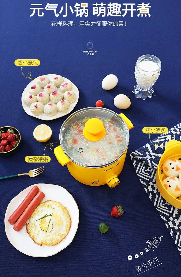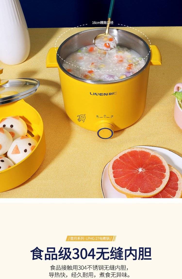 利仁电煮锅LPHG-27 学生宿舍迷你电热杯 双层多功能电热锅 电蒸锅