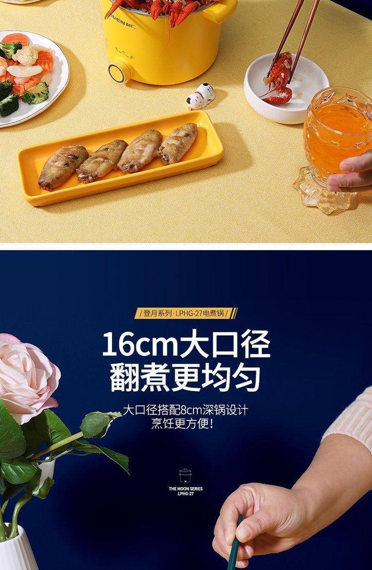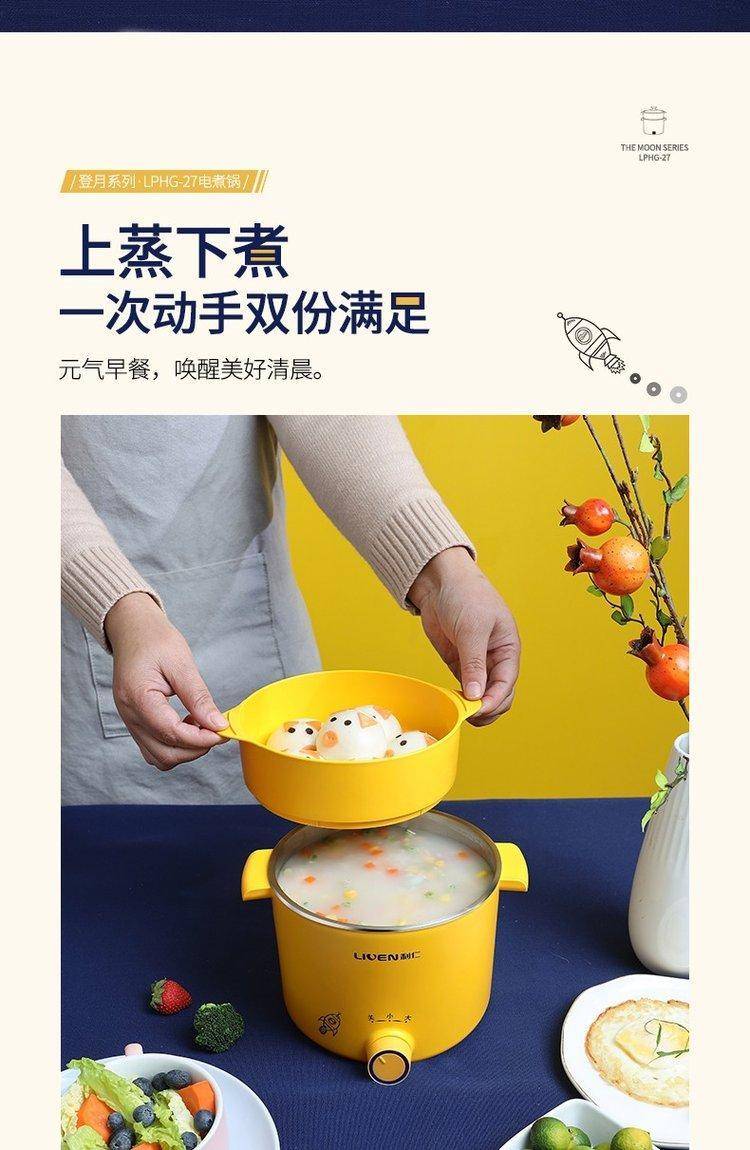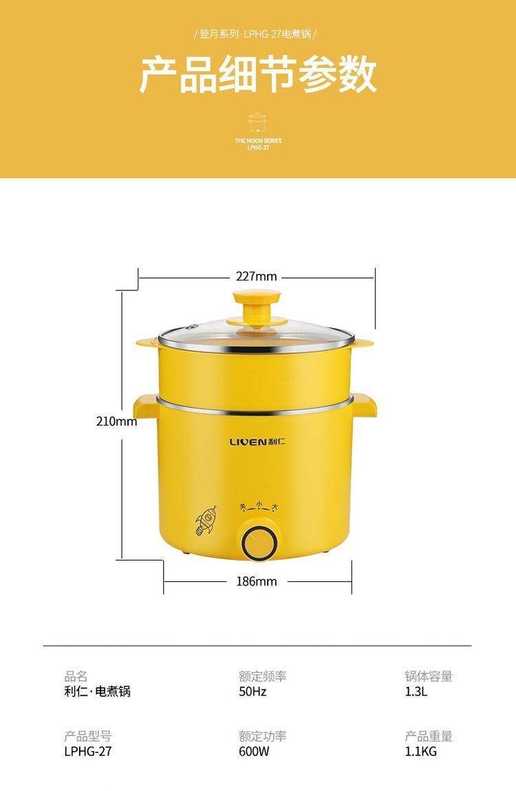 利仁电煮锅LPHG-27 学生宿舍迷你电热杯 双层多功能电热锅 电蒸锅