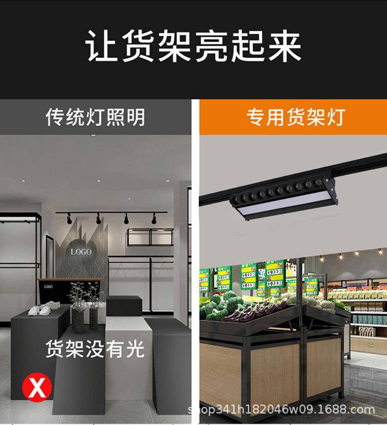 商用超市商铺服装店led长条轨道泛光灯cob直播线条补光聚光格栅灯