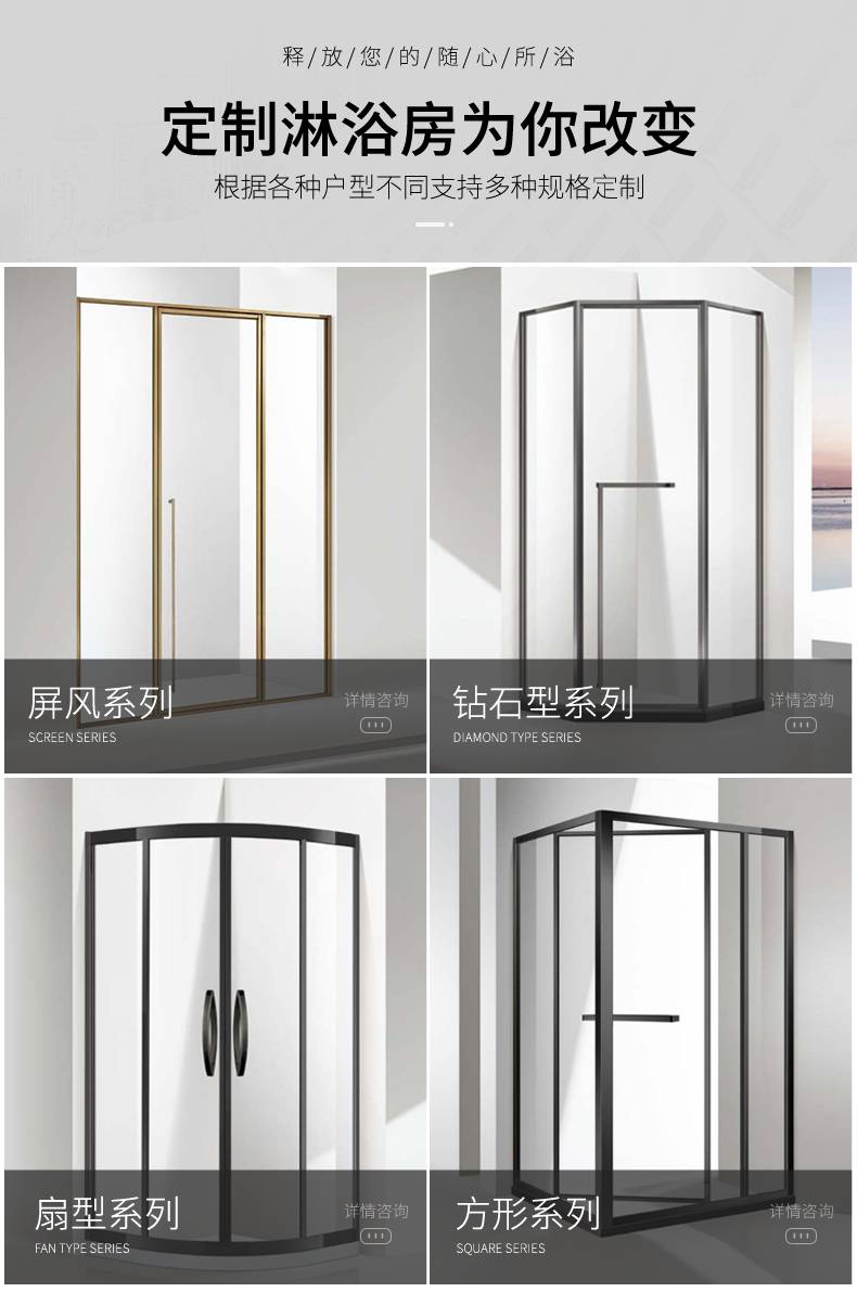 定制一字型双移门淋浴房 极窄隔断钢化玻璃淋浴隔断工厂