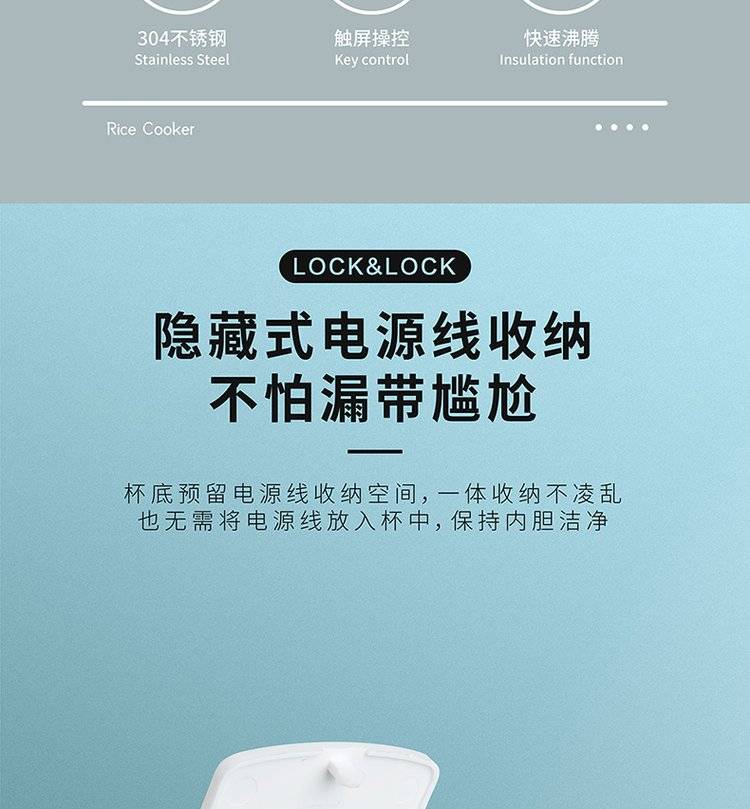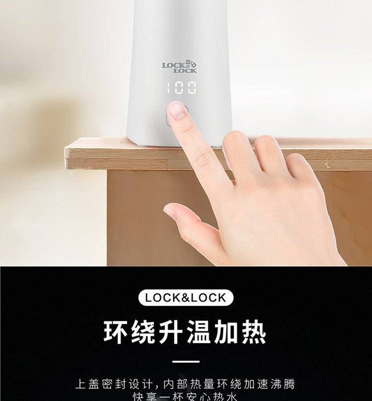 乐扣EJC1717WHT触屏电热杯 350L大容量便携烧水杯