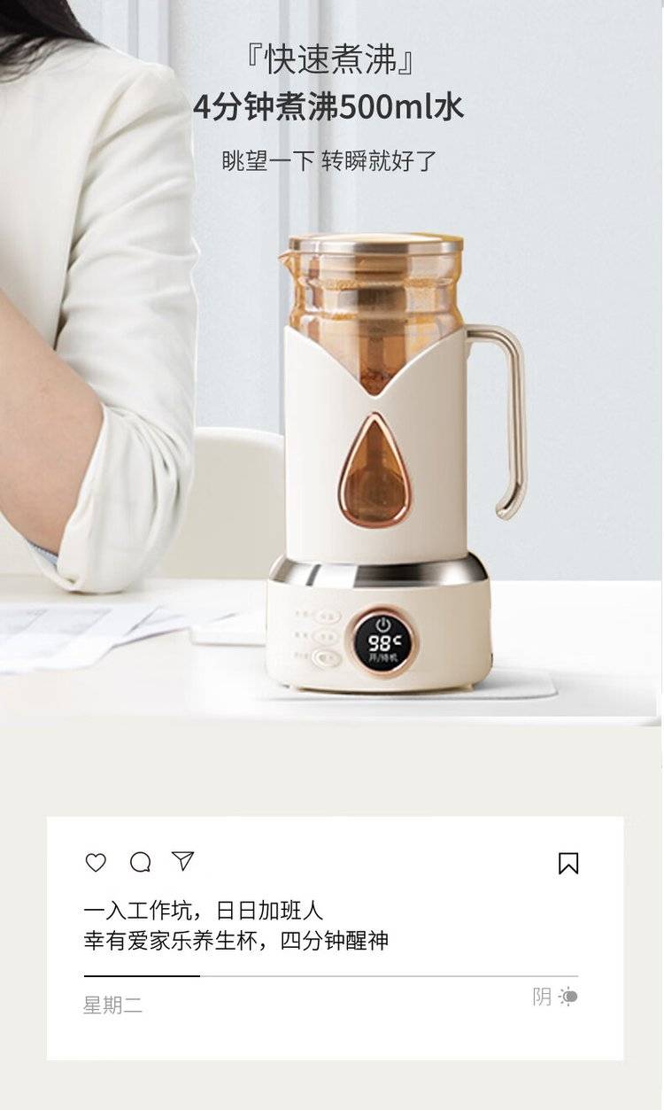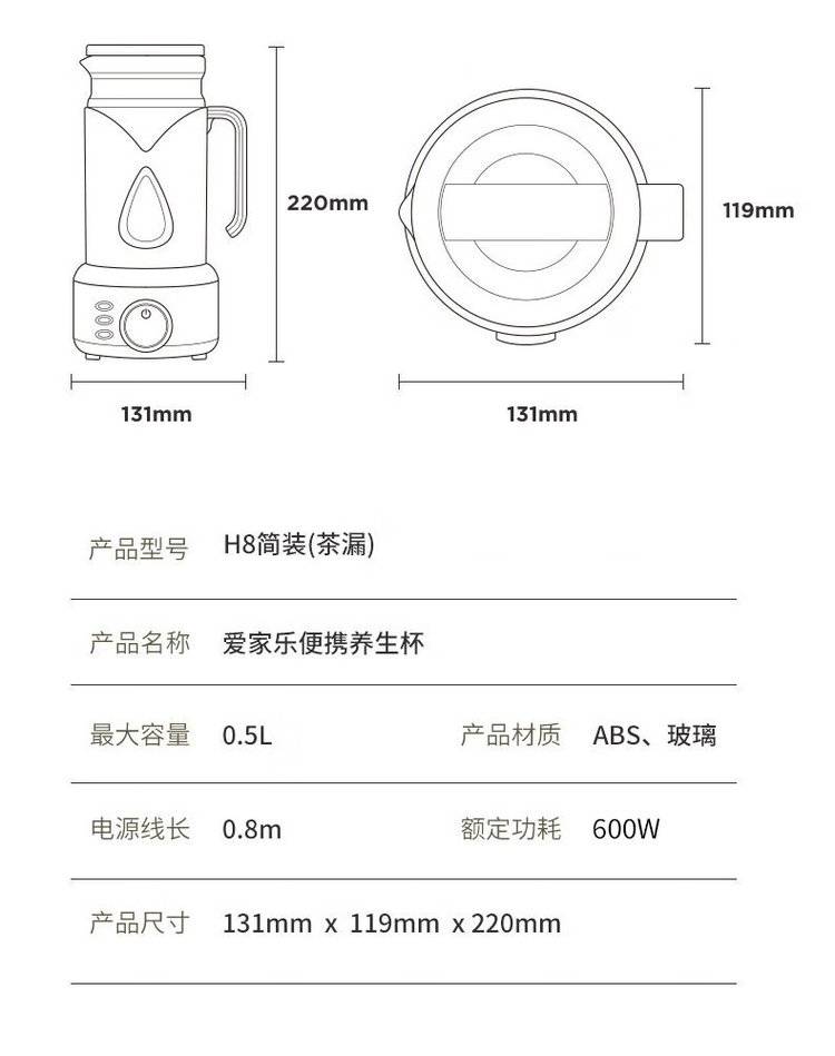 爱家乐 随行电热杯 H8 家用办公迷你便携式玻璃电热水杯商务送礼自用