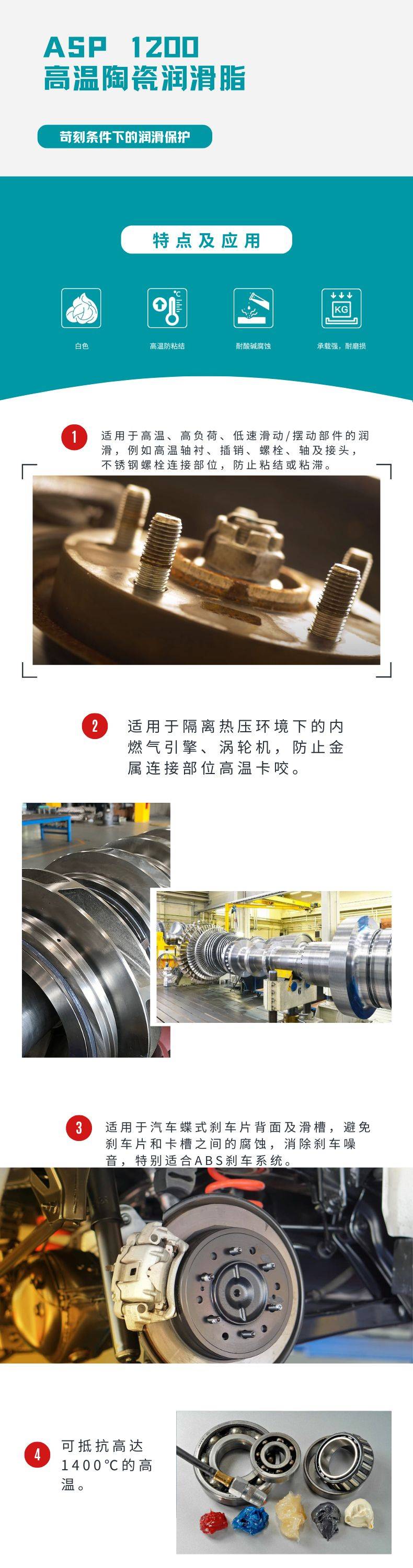 威力摩ASP 1200高温陶瓷润滑脂1400℃不碳化不锈钢螺栓汽车刹车片
