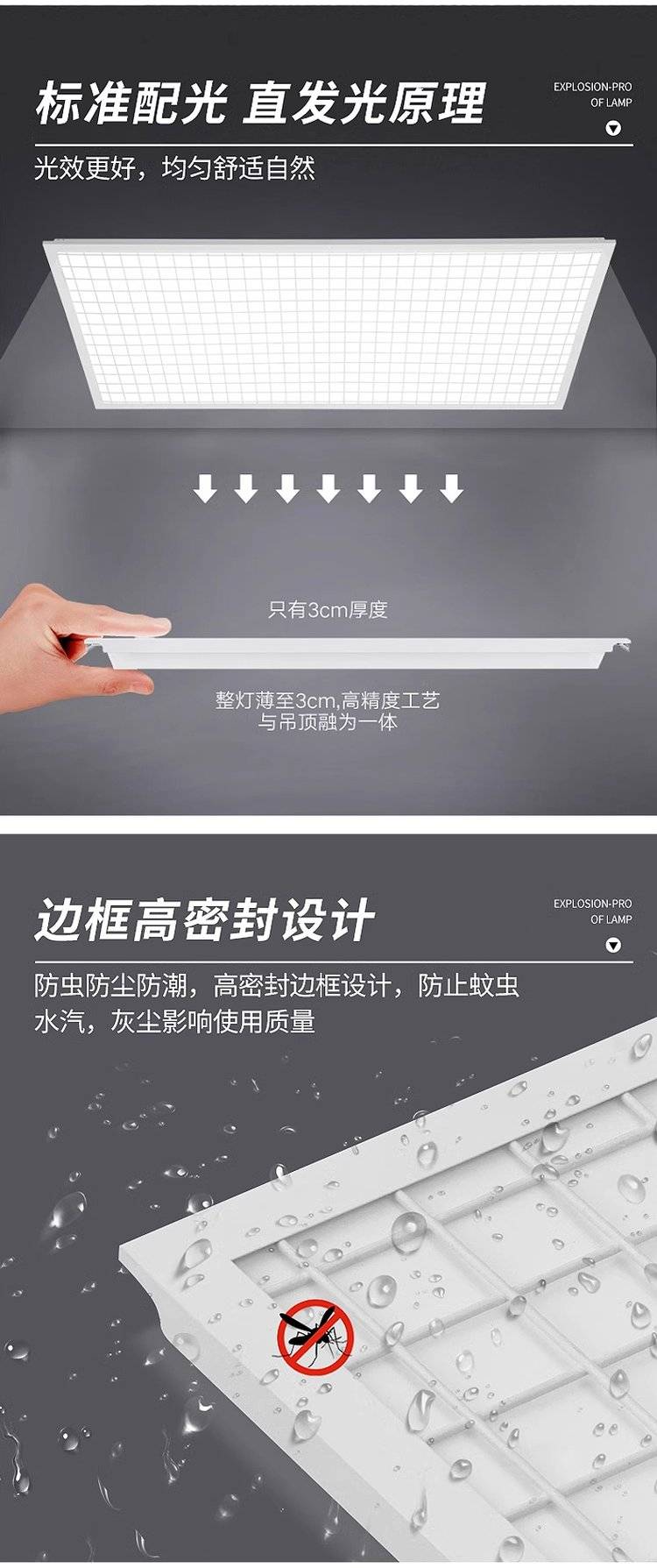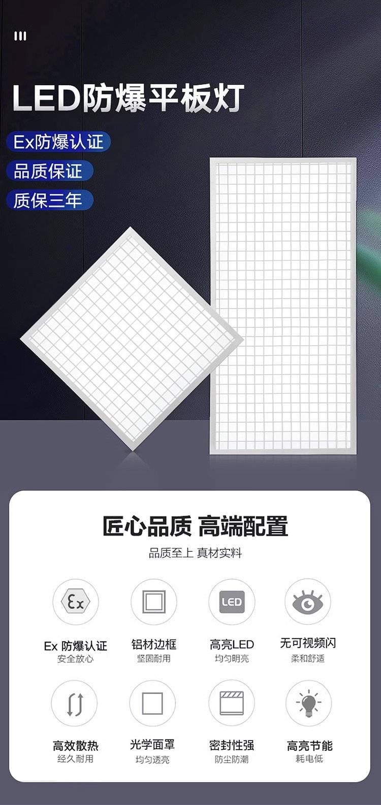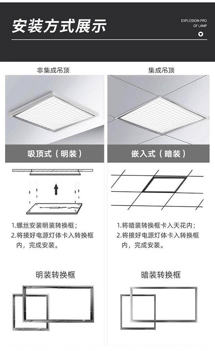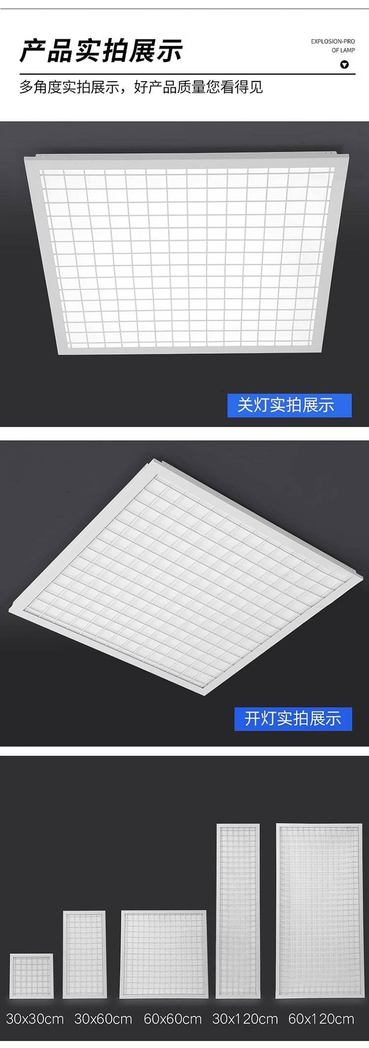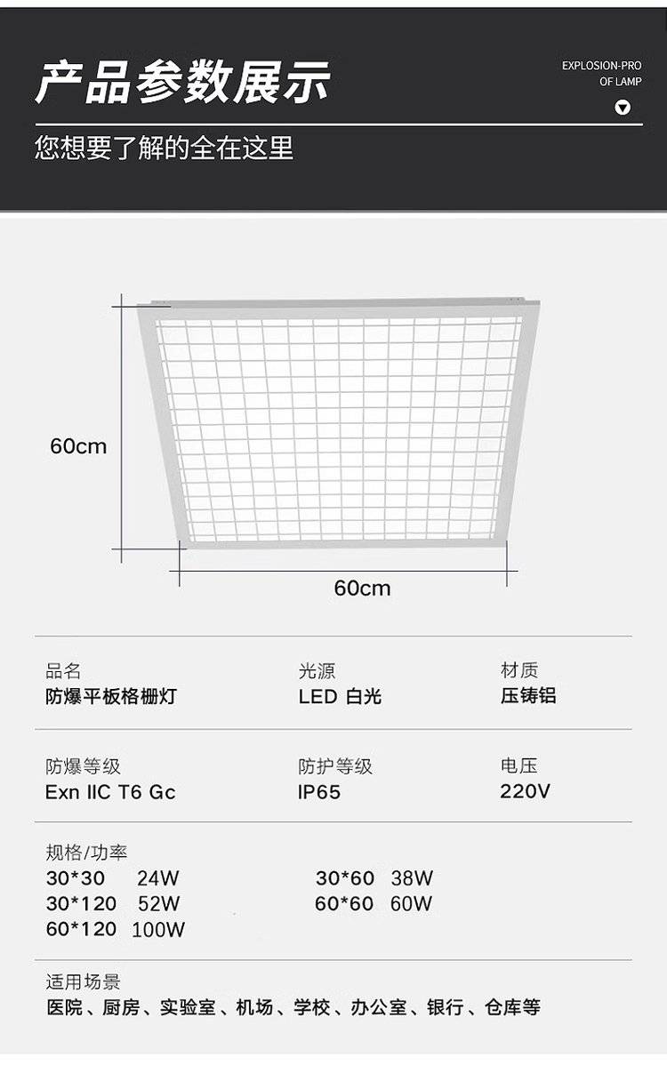 防爆led灯集成吊顶平板灯600x600嵌入式工业仓库吸顶格栅灯厂家