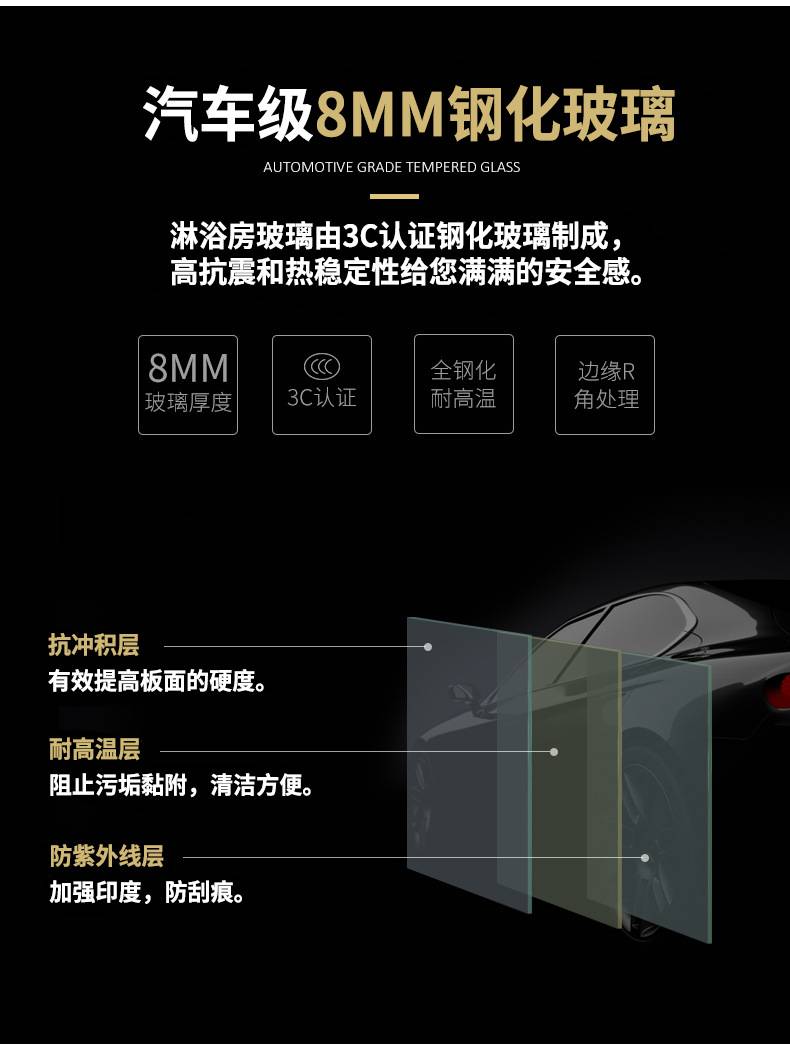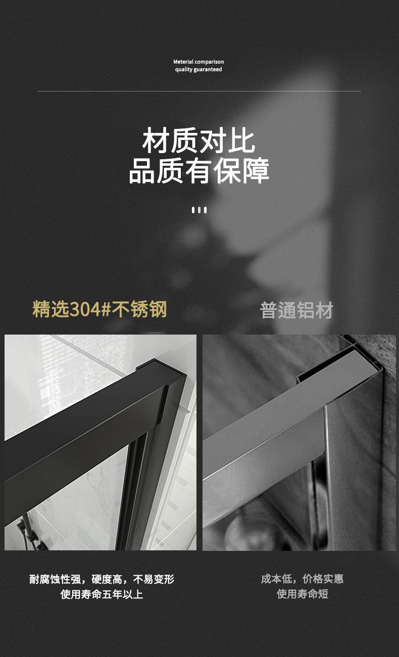不锈钢淋浴房一字型淋浴隔断浴室玻璃移门酒店家用干湿分离洗澡间