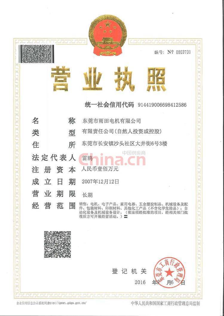 东莞市雨田电机有限公司