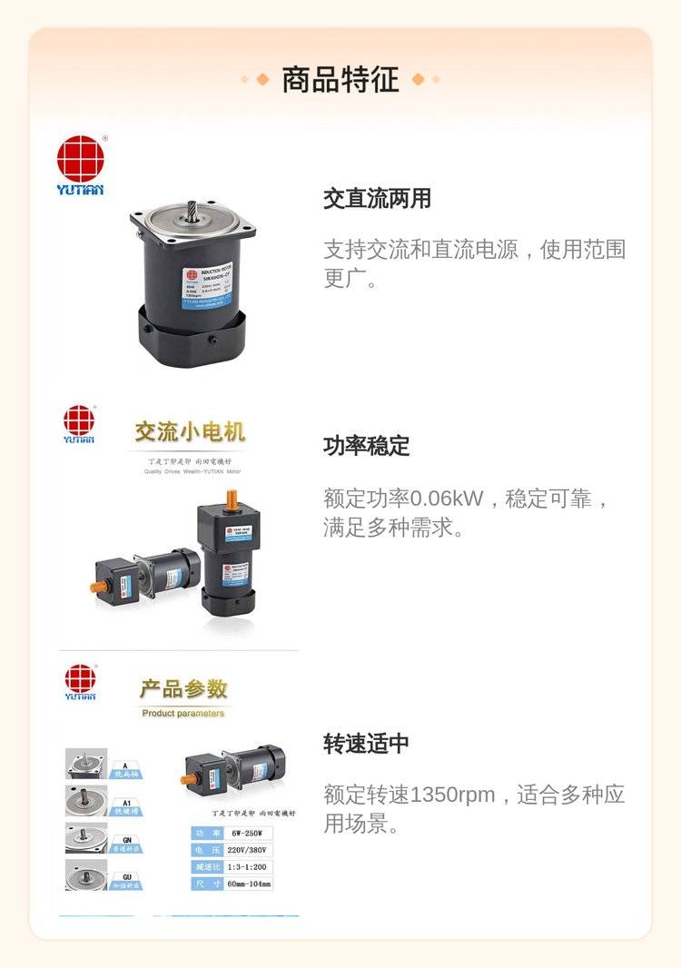 雨田电机5IK60GN-CF 60W交直流两用 220V 1350rpm