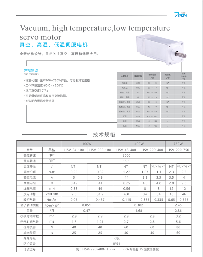 HSV-220-750-**(150℃-200℃)高温及中真空电机
