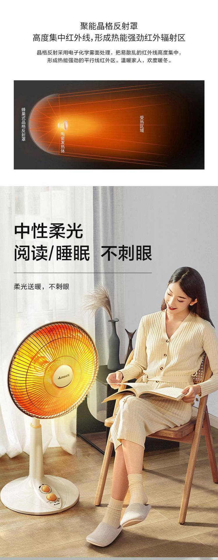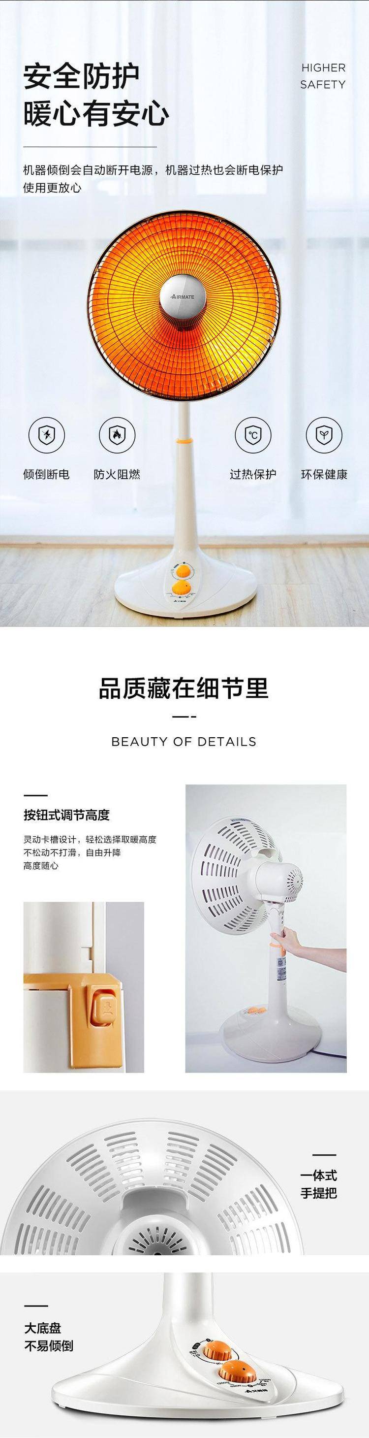艾美特小太阳取暖器家用烤火炉电暖气暖风扇HF8217/12218
