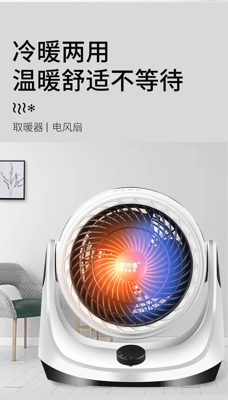 欧仕浦暖风机冷暖取暖器家用小型电暖器桌面办公室台式便携暖风扇