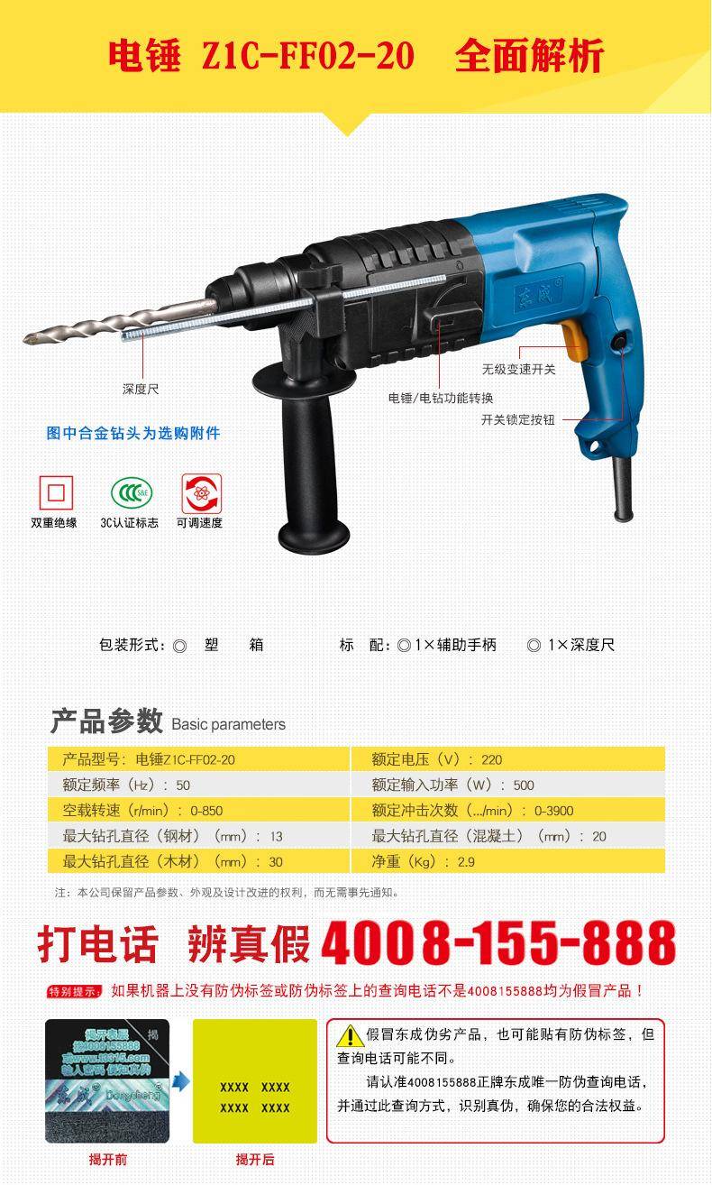 东成电动工具 z1c-ff02-20轻型电锤 两用四坑 材料一站式供应