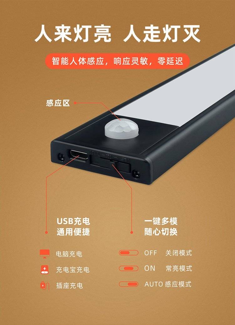 光点照明 人体感应长条小夜灯 卧室衣柜厕所楼梯床头灯