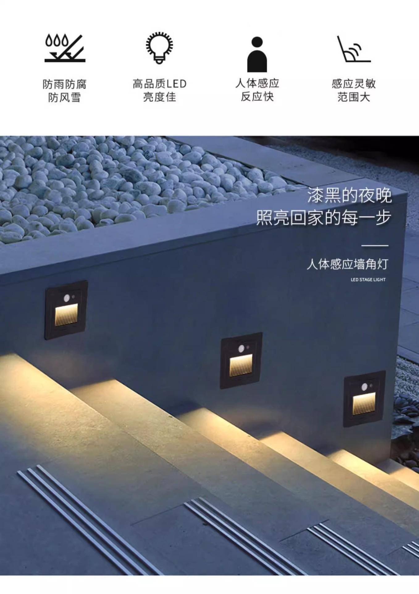 户外人体感应地脚灯86型嵌入式lLED室外庭院防水楼梯崁灯小夜灯