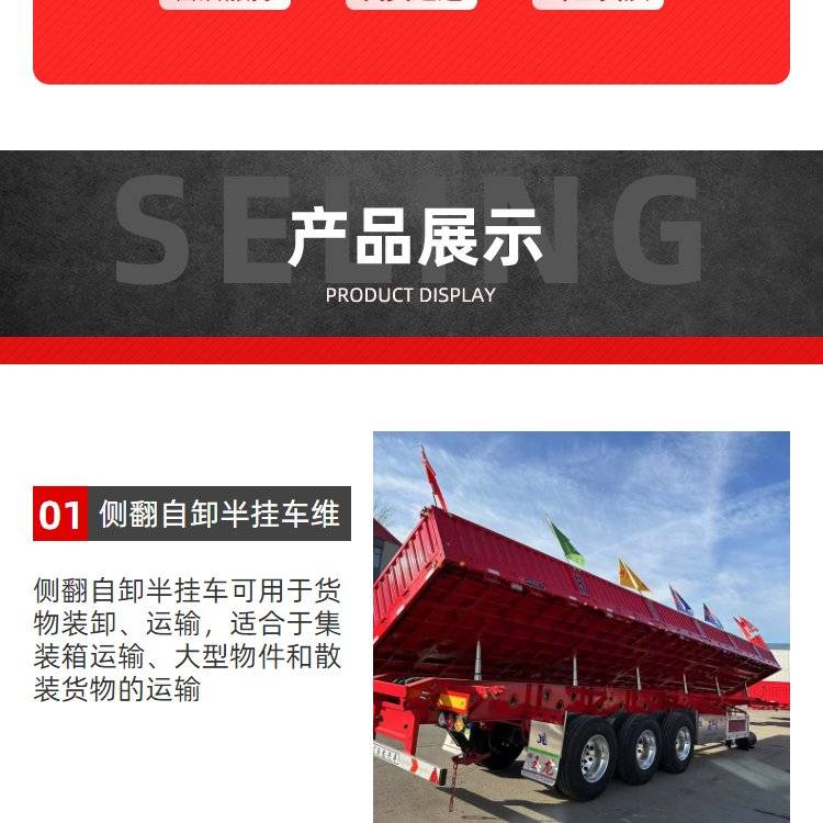 源头工厂 标准侧翻半挂车 一体式自卸车 三轴轻量化设计