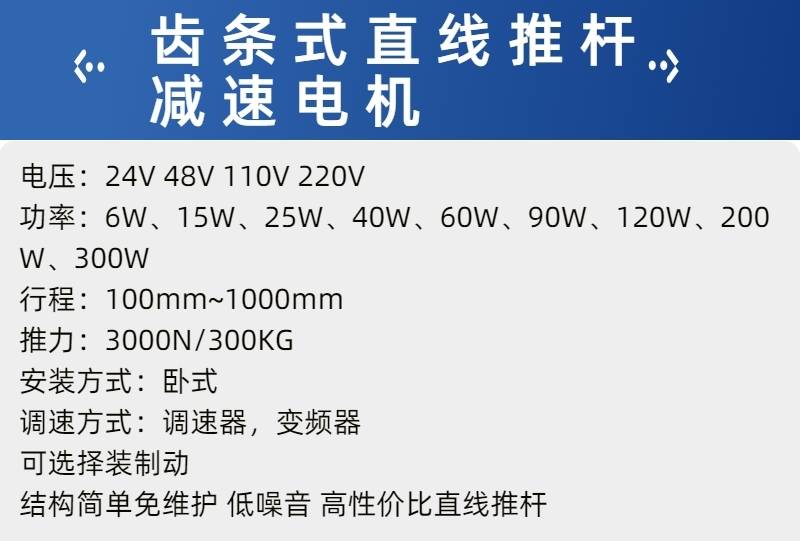 格瓦交直流电机6W~750W齿条式直线推杆减速电机水平垂直推力300KG