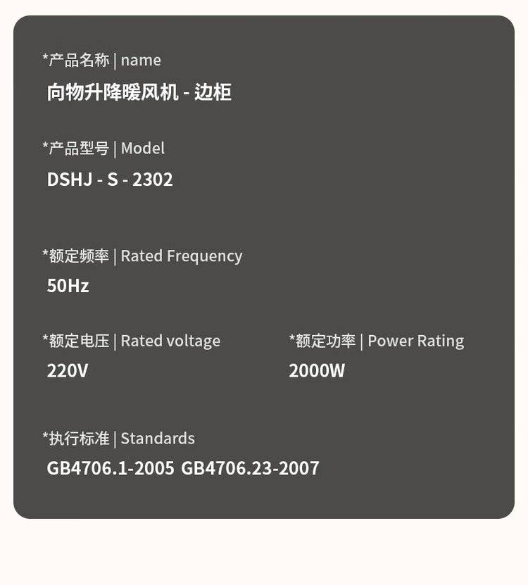 向物升降暖风机-边柜 冬季取暖器 卧室小太阳暖风扇 DSHJ-S-2302