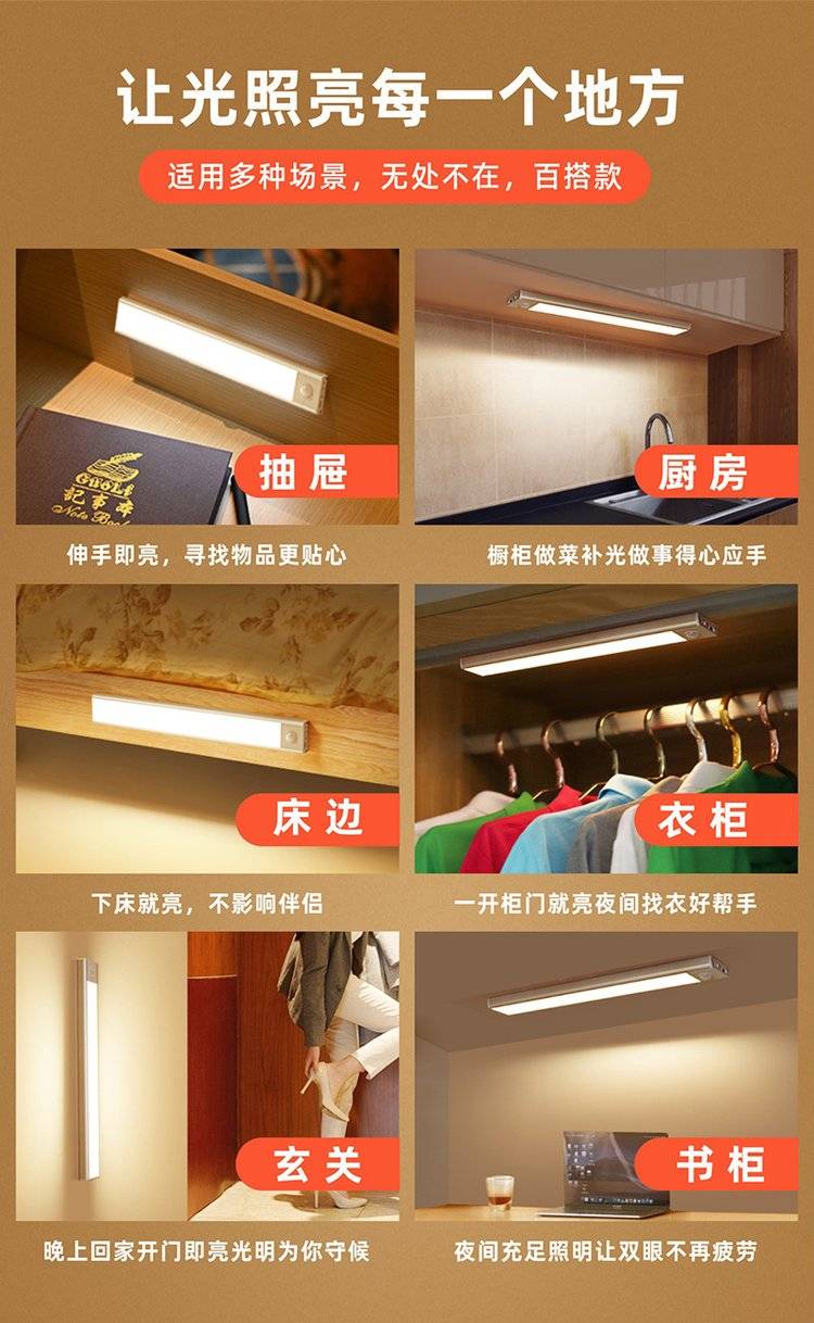 光点照明 人体感应长条小夜灯 卧室衣柜厕所楼梯床头灯