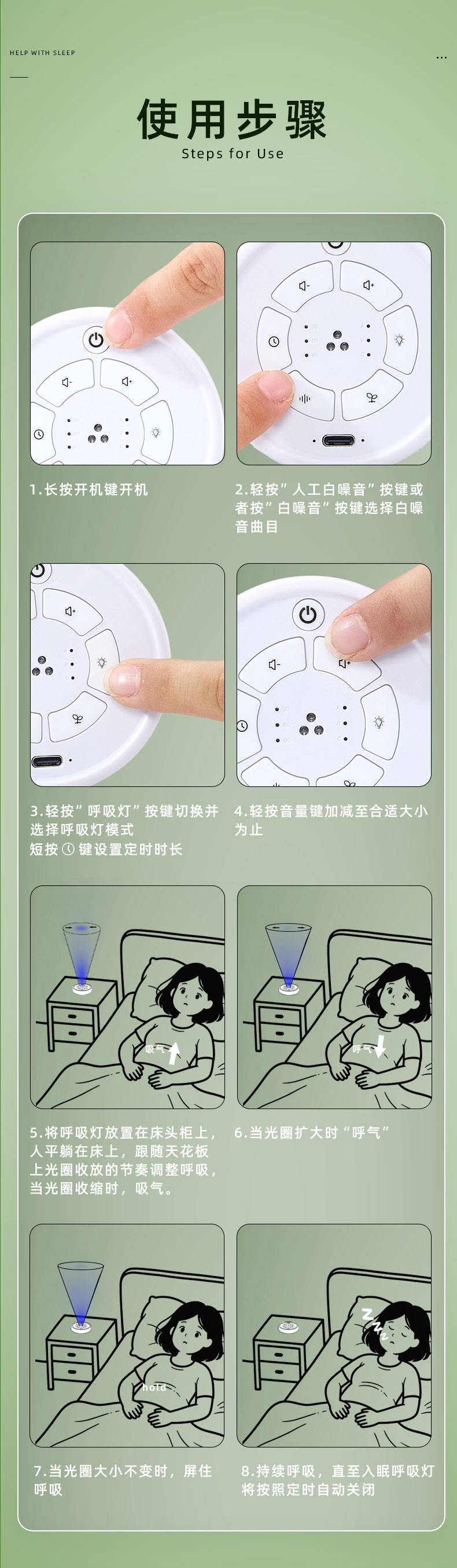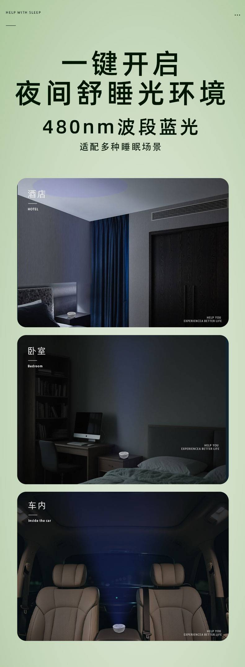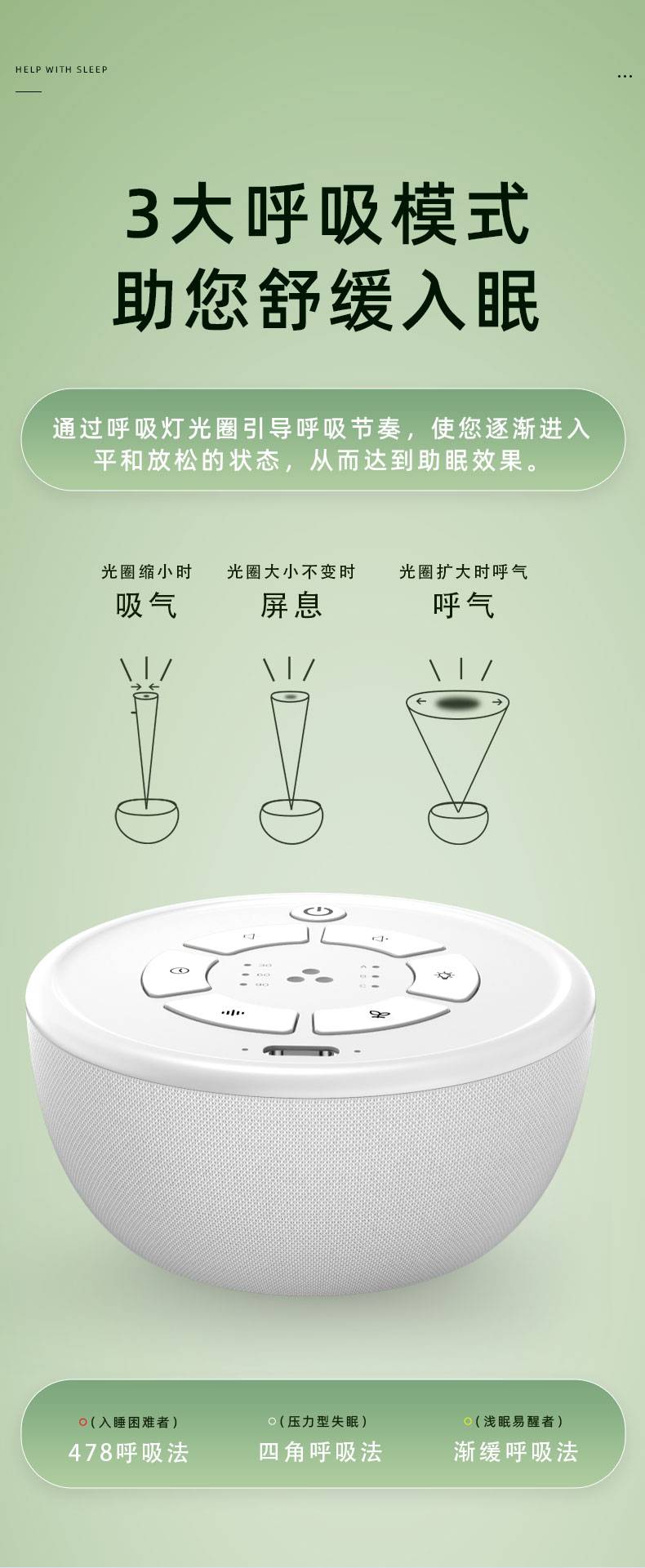 酒店随光呼吸智能LED呼吸灯助眠灯卧室睡眠灯白噪音小夜灯厂家