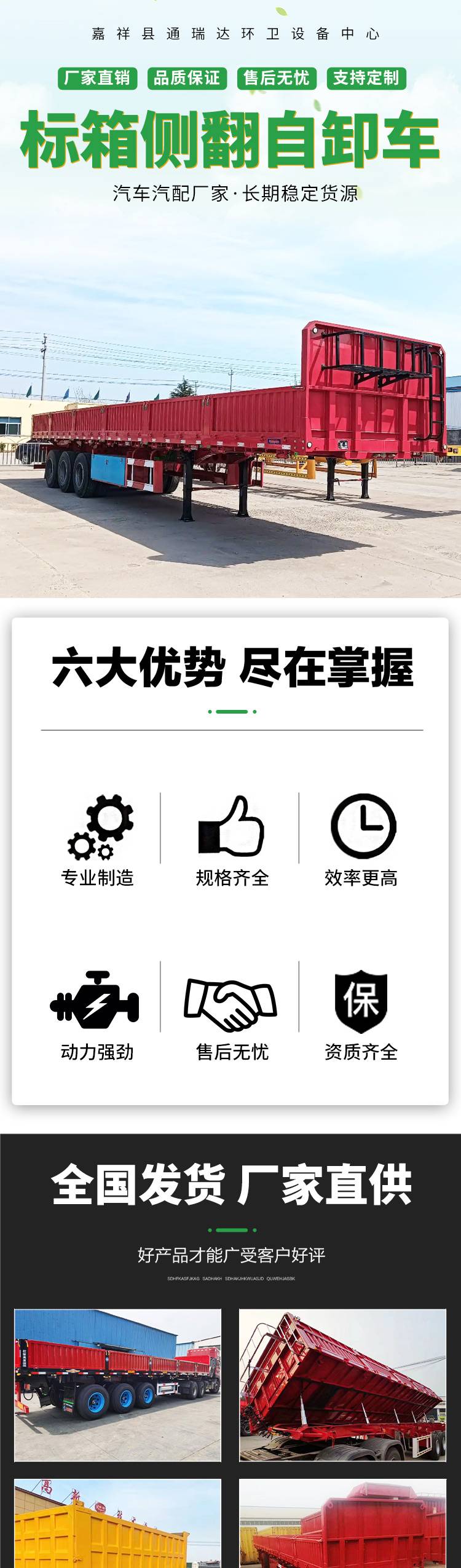 三轴13米侧翻斗自卸车运输 6油缸加1移位顶 起升平稳 通瑞达环卫