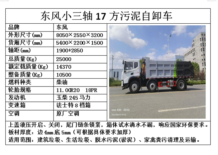 东风20立方污泥运输车 三轴总重量25吨粪污自卸车车厢滴水不漏