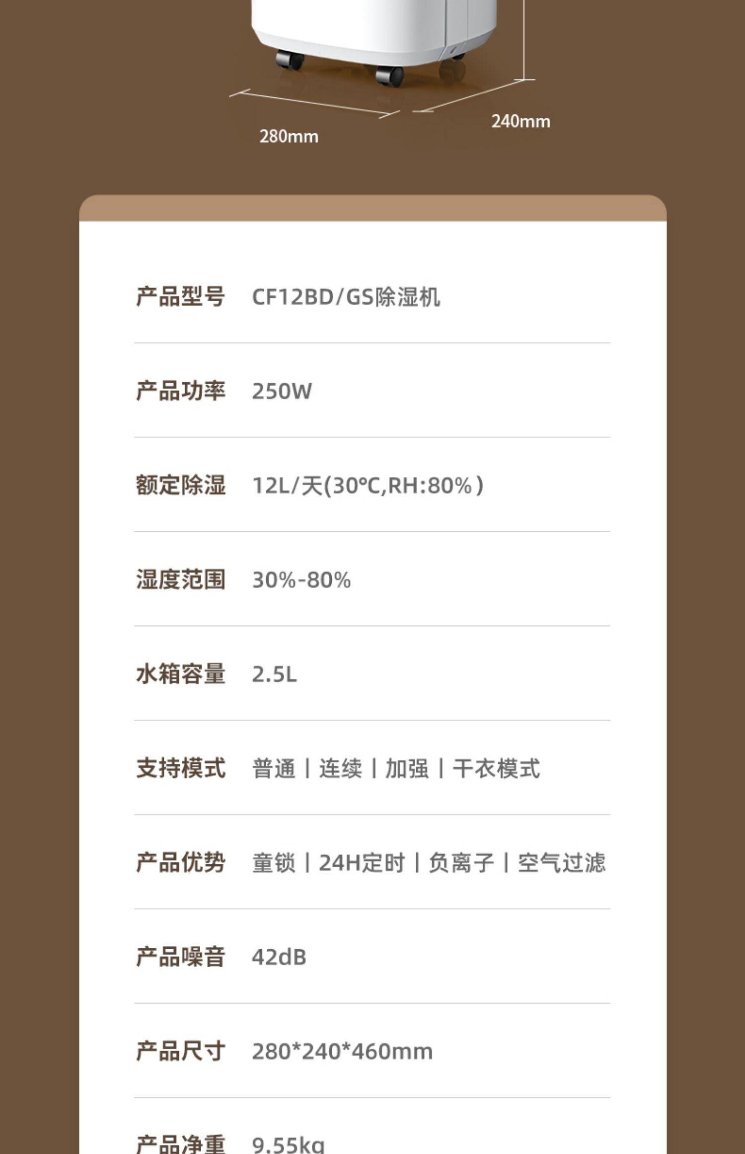 海信除湿机CF12BD/GS家用抽湿机干衣/轻音防潮去湿12L/天