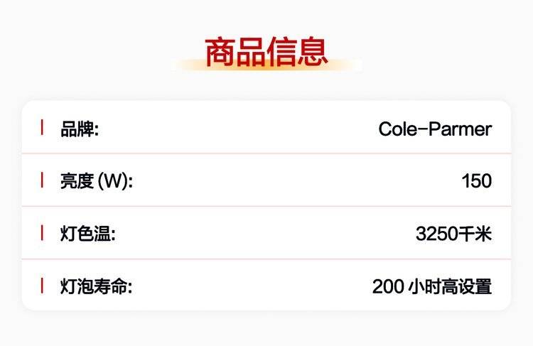 Cole-Parmer显微镜光纤照明器,卤素灯泡,适用光敏应用