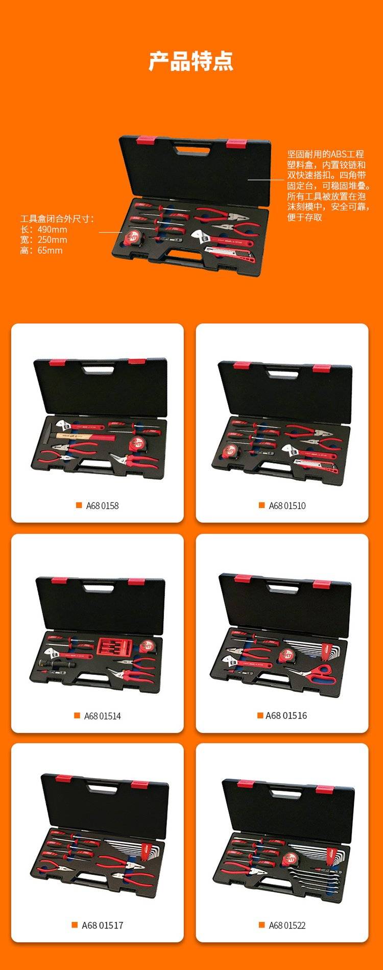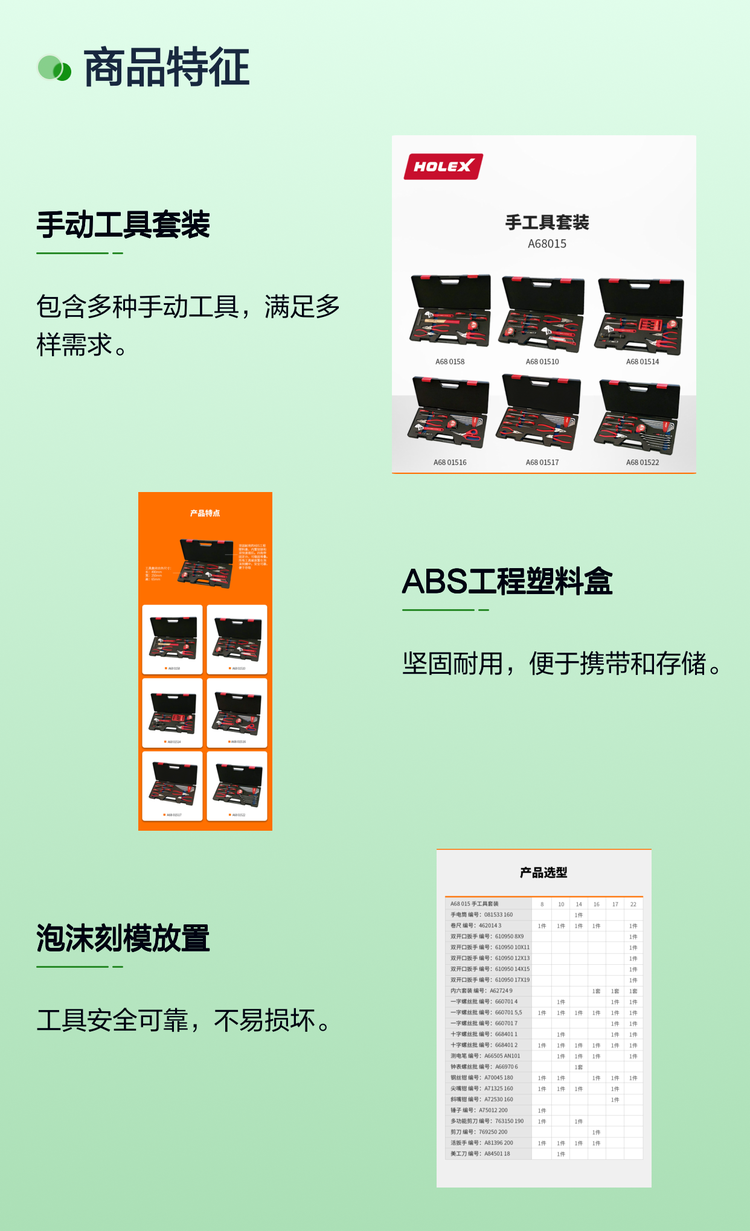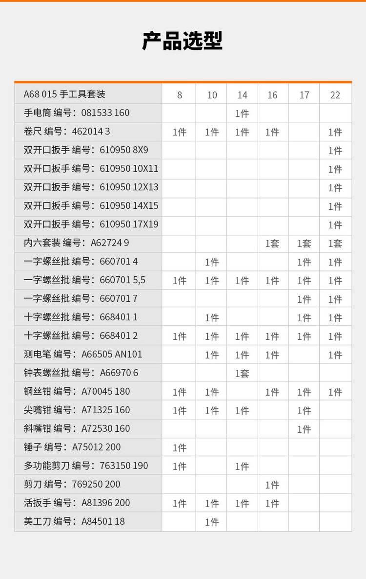 德国霍夫曼手动工具套装A68015 螺丝刀卷尺齐全